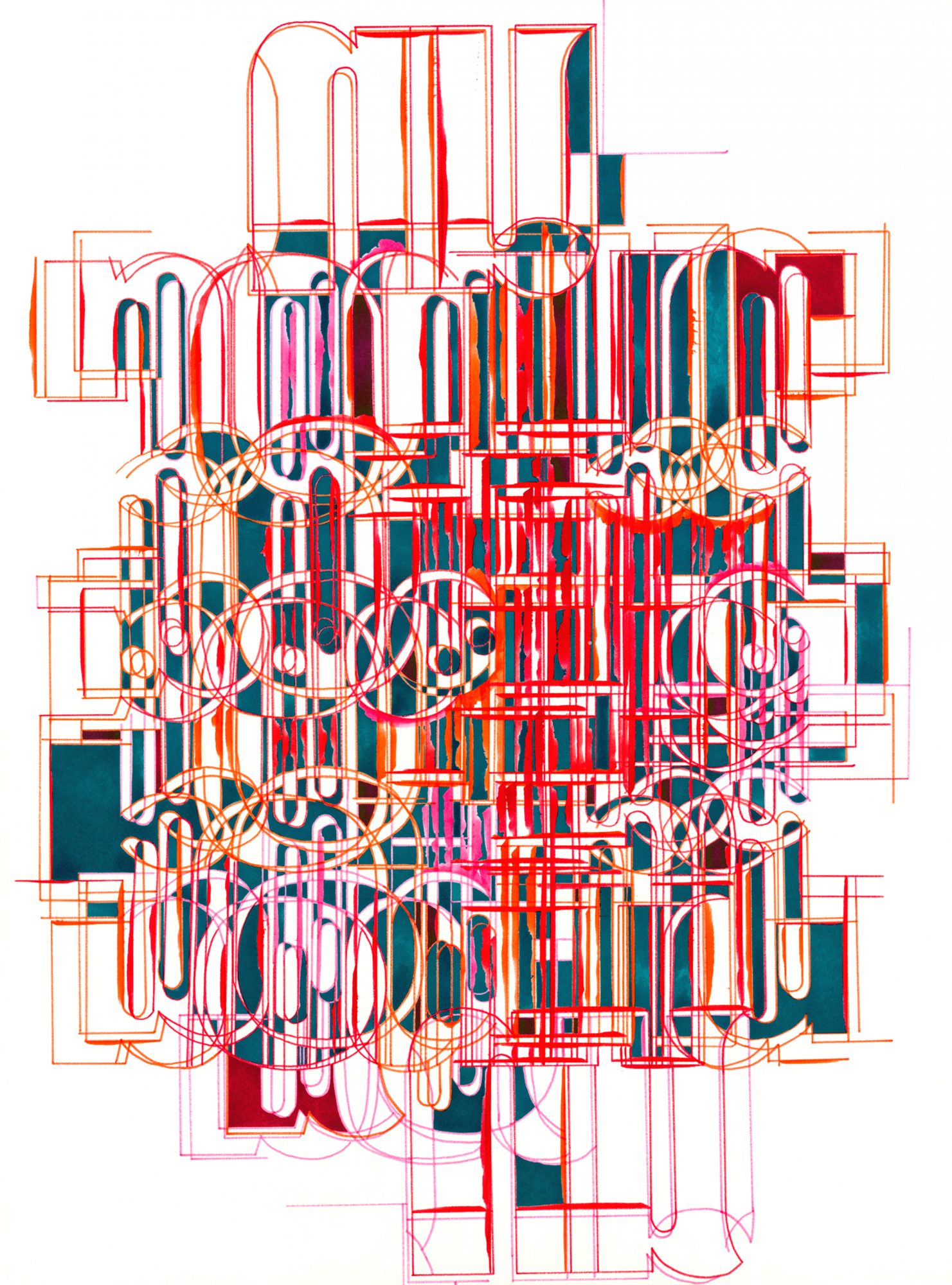 These are four marker drawings I’ve made within the last several months, and they represent the two directions I’m currently moving in. All are predominantly made with Sharpie markers, and all are on watercolor paper.