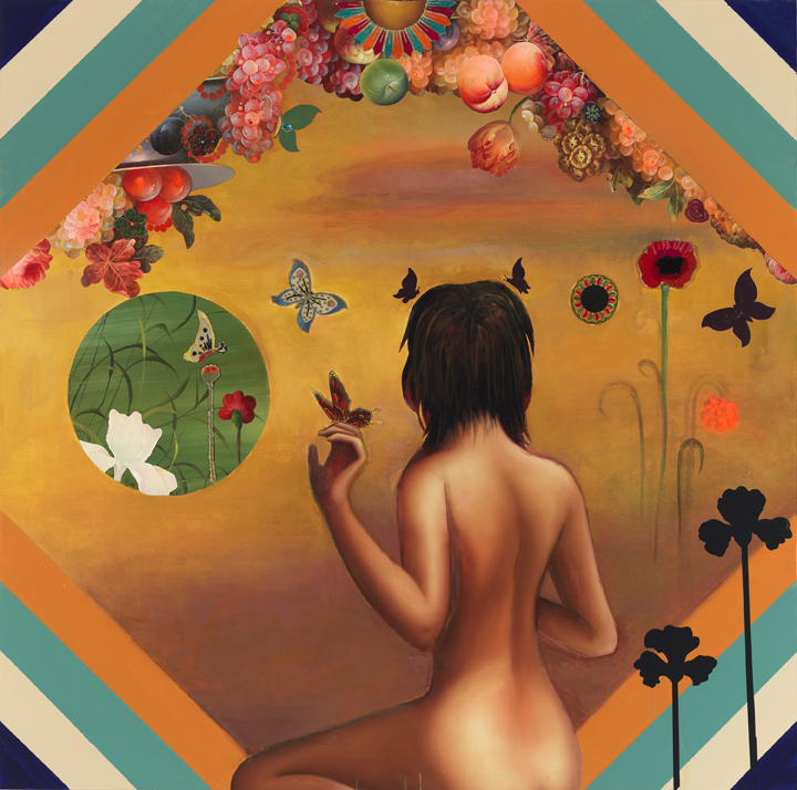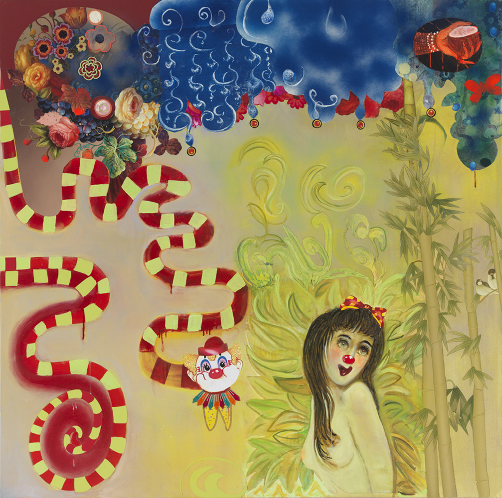 I use images that are infused with lighthearted arbitrariness and amusing anecdotes about love and affection, in an often cold and hostile world. Mostly, I am making work that percolates forth life’s imperfections: that doesn’t take decorum all that seriously, refusing to separate matters of taste from larger questions about “good behavior.” The paintings are reactions to all sorts of sensuous events, from the casual encounter to highly formalized exchanges of lovemaking (and everything in between). Miniaturized schemes, which meander between love, desire, pleasure and tragedy; all channeled through seasonal changes. Burlesque-like and usually theatrical incidents, that allow for both empathy and “addled” folly, while projecting capricious irritability with comic bumps along the way.