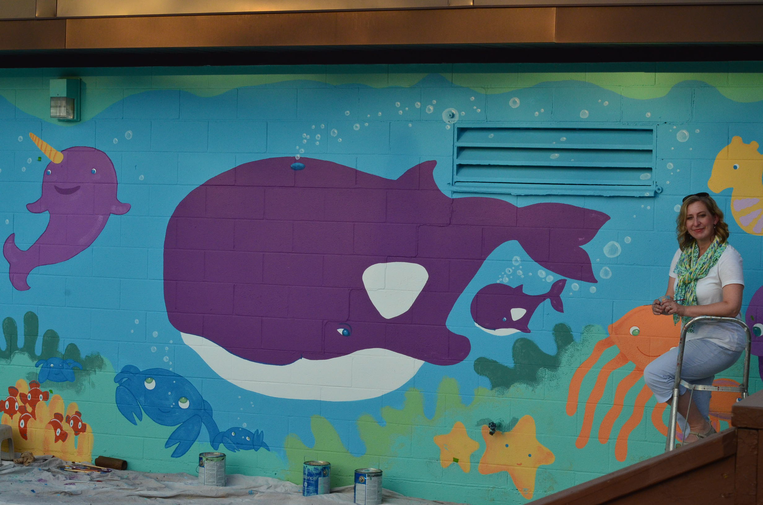 The mural I am working on can be seen after June 2 at the Westchester Community Pool in Westchester, IL, just west of Chicago. You can also see my commercial work and some of my fine art on my website, www.Saltcreekdesign.com.