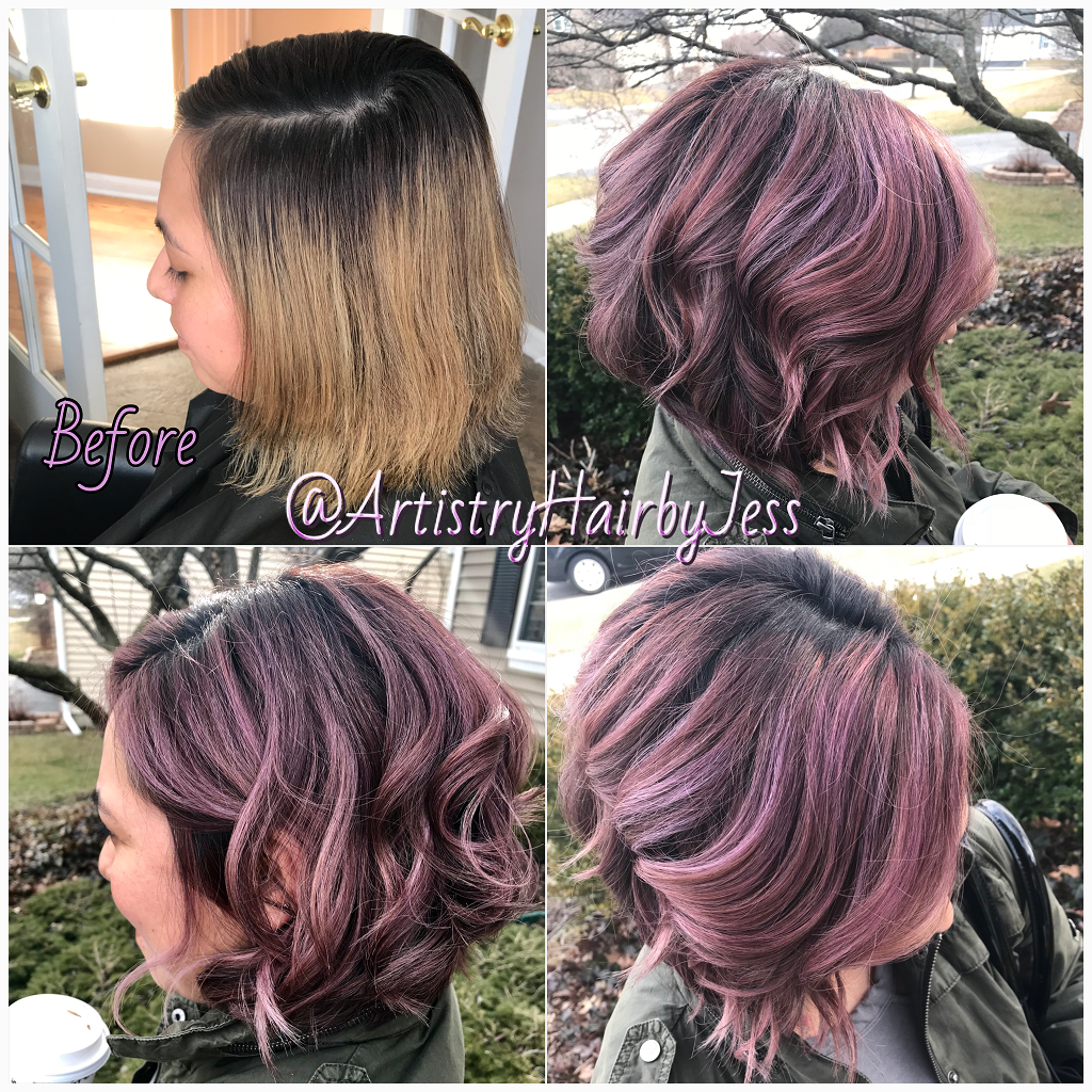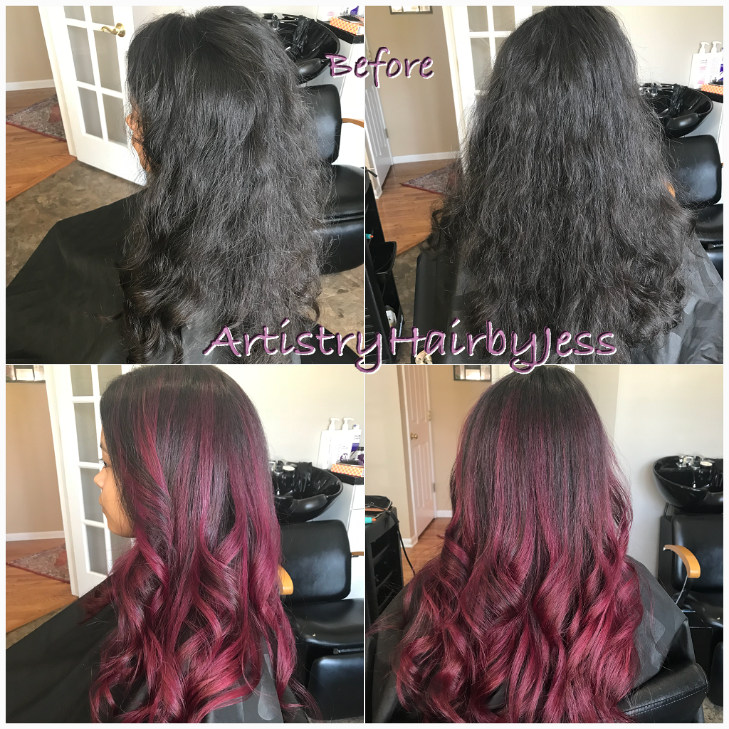 I am the owner and my very own boss of “Artistry Hair by Jess”. With two precious kids, I am so fortunate to have my salon studio at home. I absolutely love it! My clients love it as well; I receive so many wonderful compliments that they know the service will always be personable and individualized. I keep busy with my amazing clientele and onsite wedding hair service but have also been collaborating with so many talented artists including photographers, makeup artist, wedding decor specialist, special custom cake artist and more. I am so beyond grateful to be able to be there for my family, and still be able to contribute financially.             What sets me apart from others is the ability to listen to my client and create. I was told from my mentor that I was the Frida Khalo of hair. The language of creating a hairstyle whether it be a haircut, color, updo styles comes very naturally to me. I don’t like to say I specialize in anything particular because I can honestly say that I LOVE doing it all and I am very comfortable doing so. I have a broad range of haircutting skills, from chic straight A-Line Bob to a straight blade razor trendy cut to free handing naturally curly hair and everything in between. As for color, I have been doing extensive amount of training to perfect the Balayage look and keeping up with the latest trends with Babylights/Balayage Combo, Babylights/Ombre Combo and the trendy fashion color placements, but I am a firm believer knowing how to precisely apply the basic single process color, all over color, partial highlights, full head highlights is just as important.