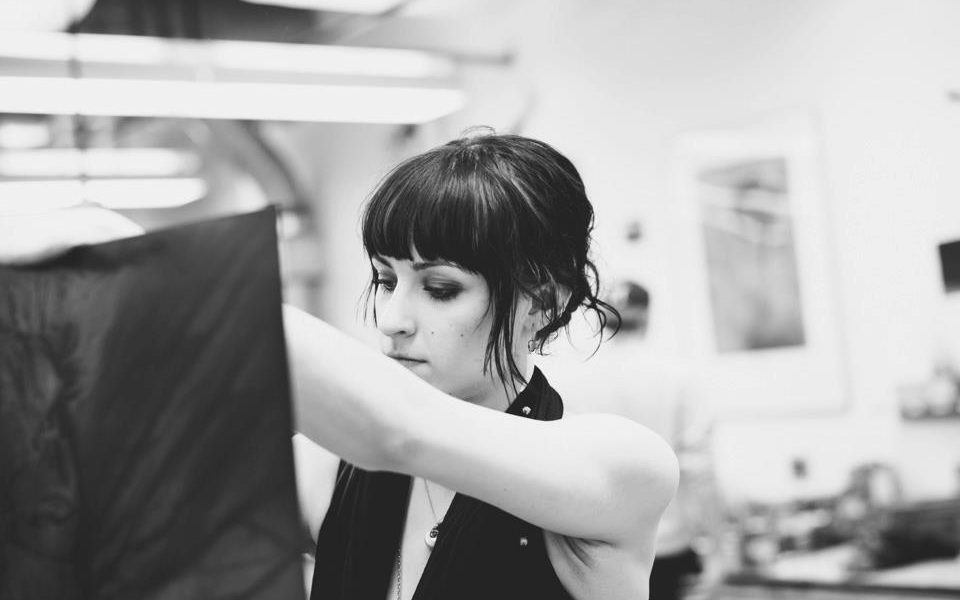 It’s never been easy to pursue being a printmaker, but I enjoy the continuous challenge. While studying printmaking in collage, I worked nights and weekends in an attempt to afford large sheets of copper and etching tools, on top of tuition and housing. I started waiting tables as a means to an end. I knew I would be good at it and I needed to make money while I wasn’t in the studio. I wasn’t expecting to fall in love with restaurant work, but I did. I was intrigued by the art of balancing cocktails and I began learning from the bartenders I worked with. When I graduated collage I left the comfort of my printmaking mentor’s guidance to apply to professional printmaking studios. Simultaneously, I applied to restaurants as a bartender and, rather reluctantly, left my first restaurant family to test my skills on my own. Though I love both the crafts I practice, it can be difficult to balance my time between the two, as both require long hours and physical work. Bartending is a unique monster of a career. It has allowed me the flexibility to move to different cities and practice my printmaking craft amongst different professional Artists. When I left my home in Minneapolis, where I was printing at HighPoint Center For Printmaking, I moved to New York City, where I printed at The Robert Blackburn Printmaking Workshop. Currently, I am printing at the Chicago Printmakers Collaborative on the North Side of Chicago and mixing up cocktails at Kuma’s Corner West Loop. In addition to my current work-print-repeat lifestyle, I am always open for commissions! Working with musicians on album art and with restaurant owners on custom decor are my two favorite projects. I am always open to meet with people to see if our ideas and visual aesthetic aline so that I can create something custom. In a nut shell, I don’t get enough sleep, but I really enjoy my life.
