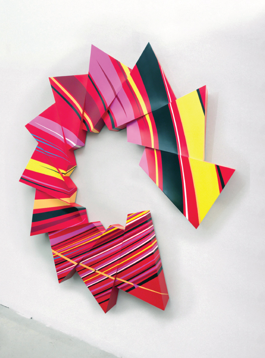 As an Artist, I look for ways to interact and engage with the sensations and experiences that I find interesting and compelling. I love music and I love art and I want to be in it. I want to participate with all that great work out there. I try to pay attention to things that move me. Sometimes, those experiences are ordinary and simple and sometimes, I don’t understand what’s happening. Maybe they are profound moments or maybe they are just common events, but something is resonating. Often, when I listen to music, I get an idea and I follow it. I look for the colors and shapes of rhythm and sound. I think Adobe Illustrator is great for playing with certain colors and shapes and I know carpentry so I use those tools. I enjoy using my hands and I paint on wooden forms and shapes that I build and bend. But, what I’d really like to do, is swim, float and live inside color and sound. I suppose we already live there sometimes. I just want to keep that going.