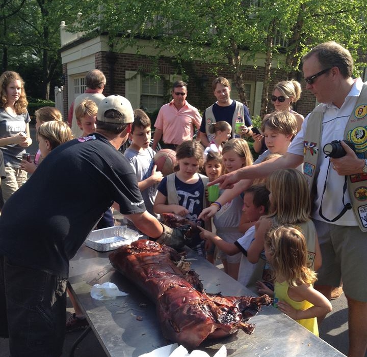 Our willingness to assist the host or hostess makes us different from the rest. We are always offering a hand to help set up for the party as needed. Be it in the sunshine, rain or snow we arrive, most often during the night or at dawn, with our grills and roasters, set up and cook for you over Kingsford charcoal. Our tried and true slow-cooked process results in lip-smacking goodness. As many of our repeat customers will attest, it takes a while to prepare your special menu but nothing beats the taste. The fun gets rolling while we pull the pig and pictures are encouraged!! We provide the serving tables and plastic ware for your guests and after serving, we clean up and leave you the leftovers packaged in foil.