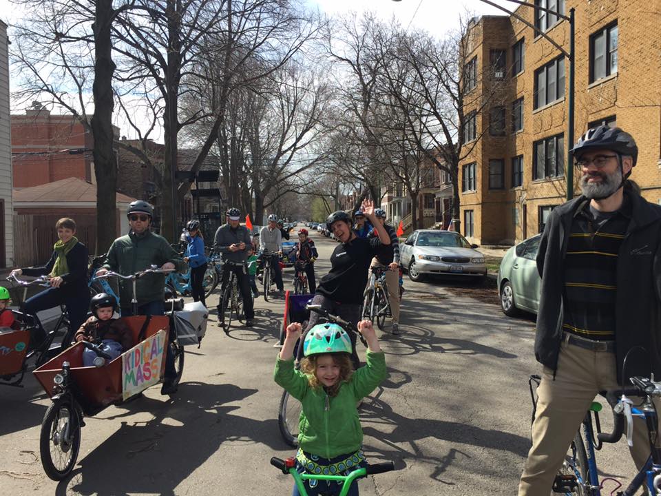 Last year, all of the local neighborhood Kidical Mass rides formally grouped together under the banner Chicago Family Biking, which I am a co-founder of.