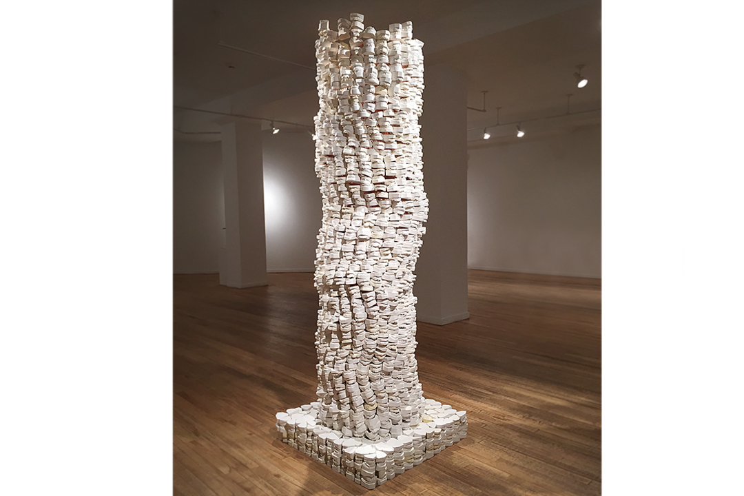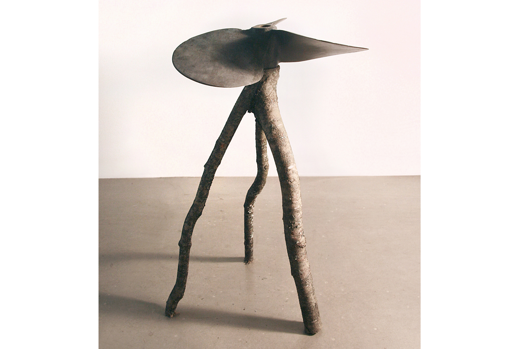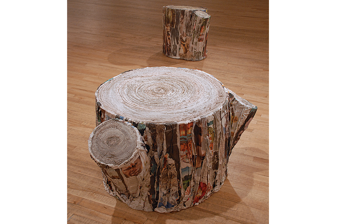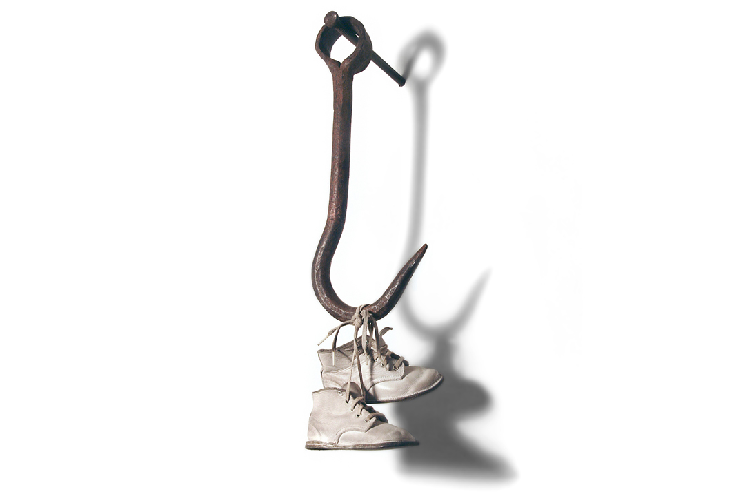 In this work, everyday objects from the simplest and most overlooked places reference basic human nature and anatomy. Years of collected newspapers, photos, kitchen tables and chairs, outboard propellers, and baby shoes, all bound to be discarded or at the very least dismissed, leverage the “something new.”