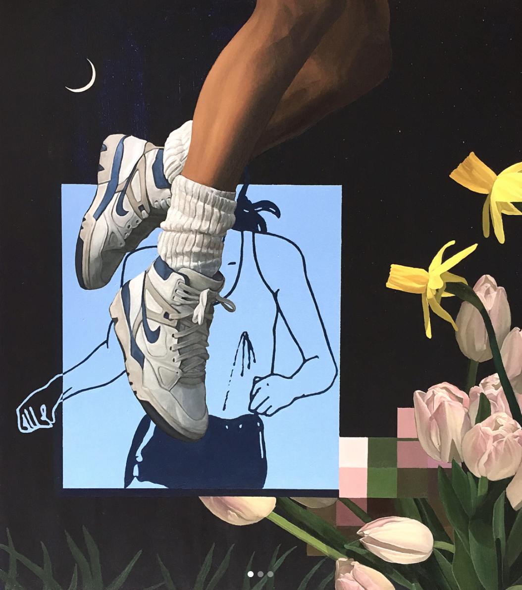 I grew up on the Northwest side, the first place I ever really saw art was on the blue line. The train would go by wheat pastes and murals near Logan Square and I thought they were magic and I wanted to make them. A lot of Chicago art has a strong graphic style, from the stuff in the street to the Imagists. That stuff heavily influenced me early on. I work as a painter in Detroit now and I still focus on representation which I think has a lot to do with the visual environment I grew up in.