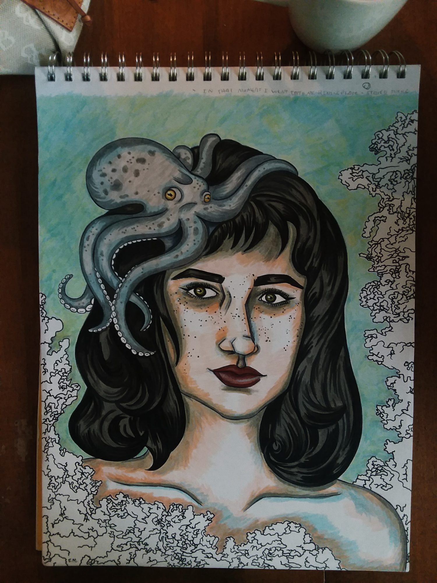I’m an author and illustrator who specializes in mixed media, mostly in ink and watercolor or ink and marker. I often incorporated acrylic, collage, and pencil as well. I’m eighteen years old and will graduate from Lake Forest College with my bachelor’s in December.