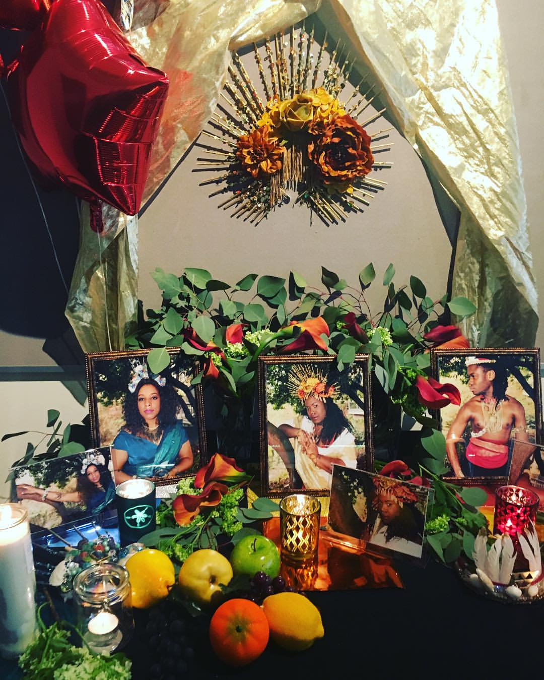 My latest fine art piece was a photo shoot and alter installation that combined themes of variety of religious alters and practices and narratives around death and anxiety it incorporated a bit of vocal performance as well. I was looking a lot at my own history of studying and following organized religion, the role religion is rituals of death. As a teacher in Chicago I saw a lot of death and violence through my students specifically. I would see these alters created with flowers, cards, toys, balloons, candles, etc. laid in remembrance of children so young I considered often how in death that was likely the only time they were presented with sure an offering. I created alters for the living, sang to and acknowledge people who I felt needed to feel that in their living spirit.