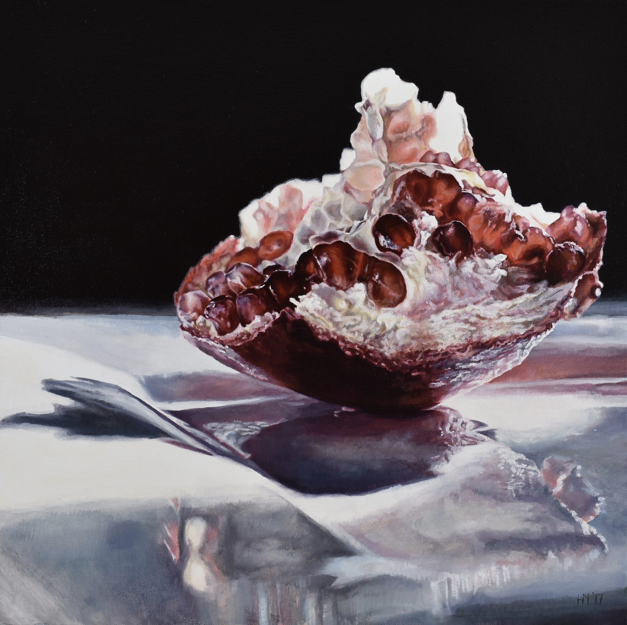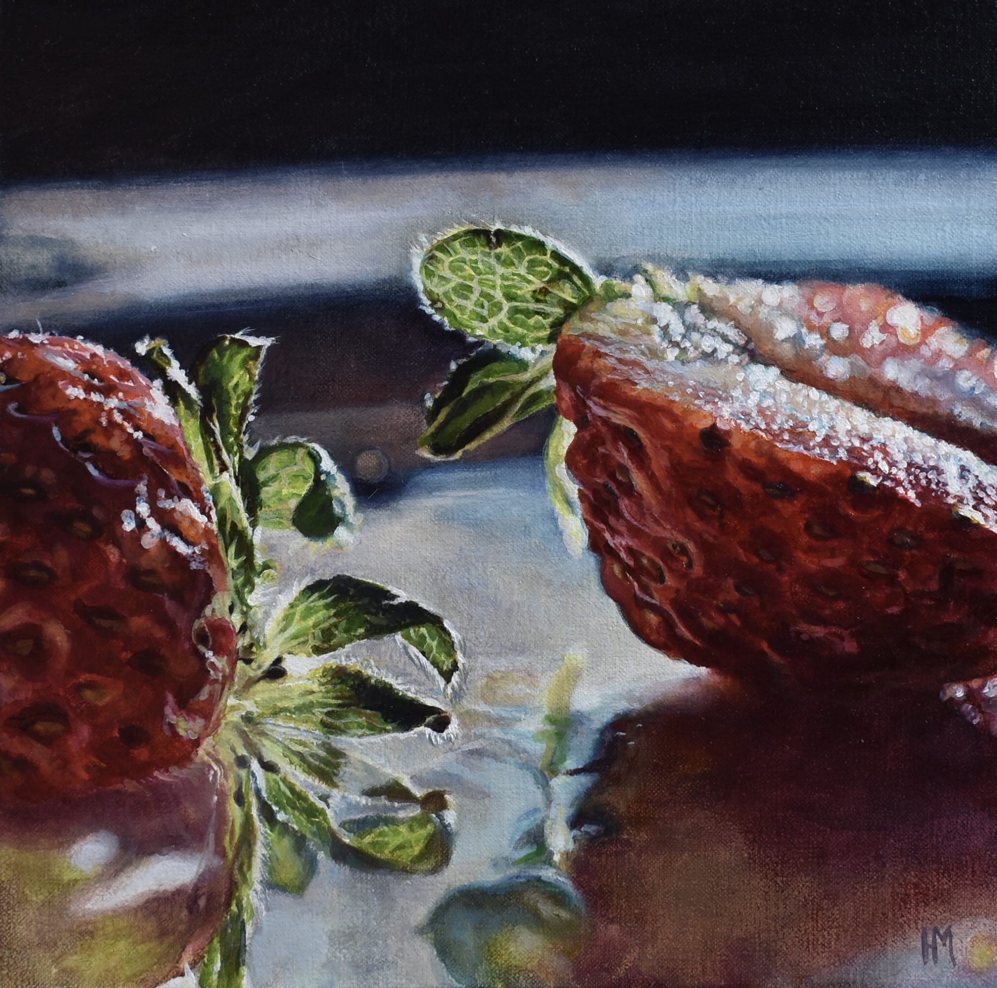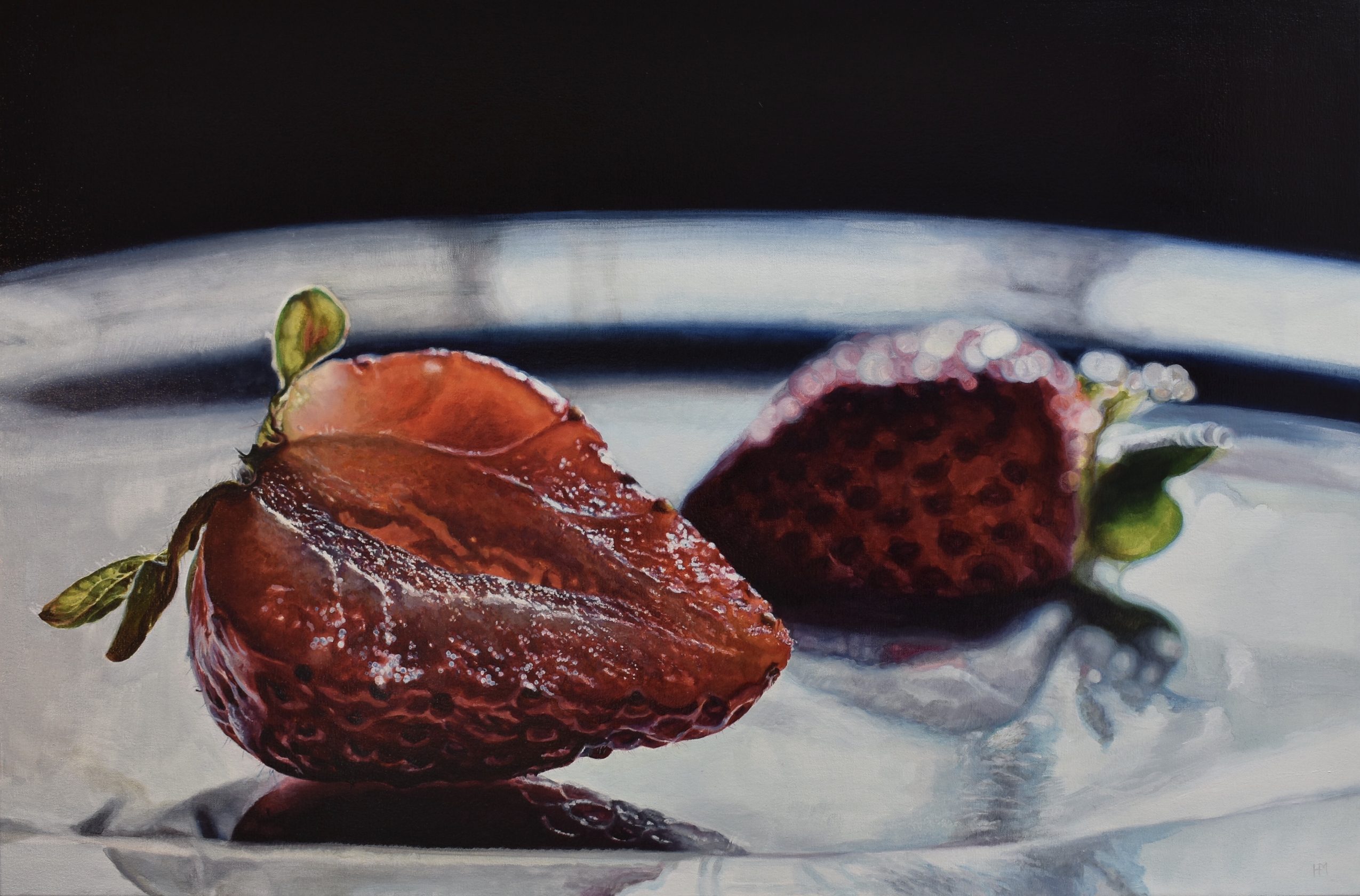 In the process of painting fruit, I have fallen in love with the quality of light which illuminates all that we touch. I have become obsessed with the texture of paint, especially how it can mimic the quality of flesh and fruit. I love exploring beautiful reflections as a representation of duality in life. Oil paint is a very sensual and thought-provoking medium. The act of painting feels very philosophical to me. I ultimately want to use it to create paintings that viewers long to touch. Paintings that make people think and feel. If I create a painting that sticks in a viewer’s mind long after they have seen it, then I have met my goal.