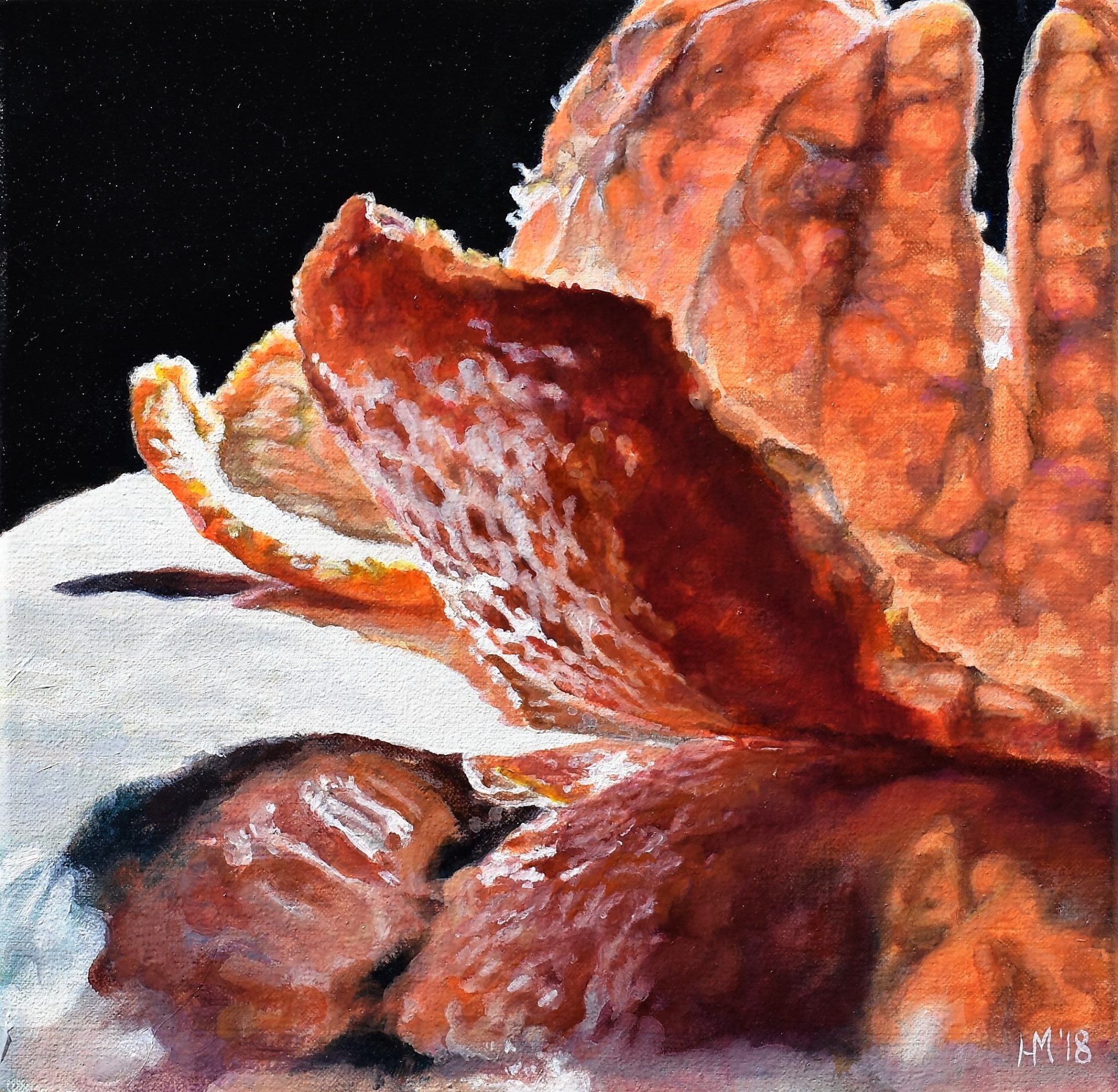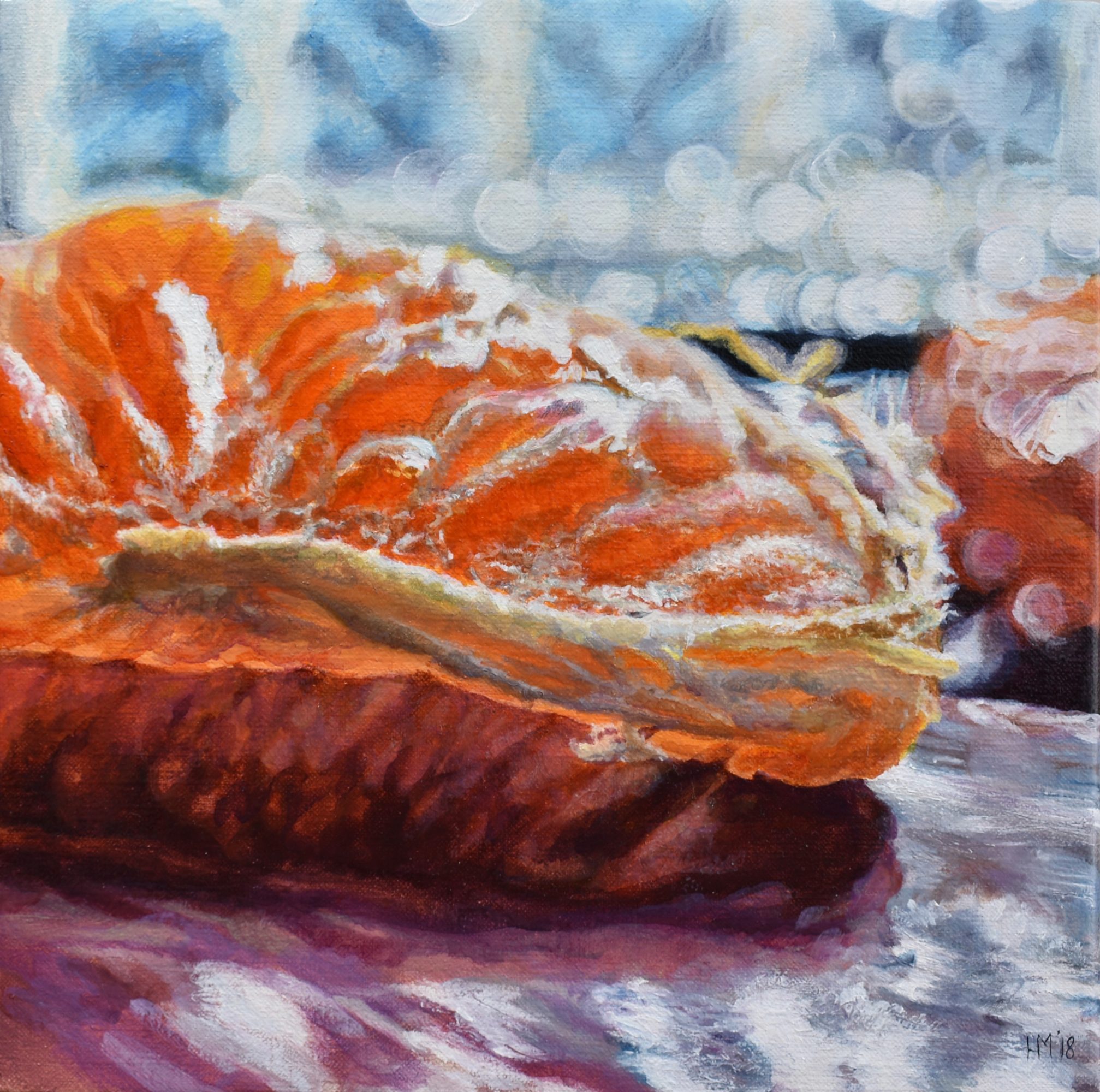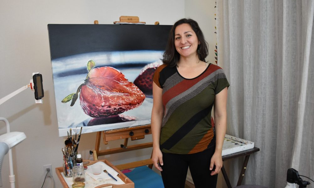 In the process of painting fruit, I have fallen in love with the quality of light which illuminates all that we touch. I have become obsessed with the texture of paint, especially how it can mimic the quality of flesh and fruit. I love exploring beautiful reflections as a representation of duality in life. Oil paint is a very sensual and thought-provoking medium. The act of painting feels very philosophical to me. I ultimately want to use it to create paintings that viewers long to touch. Paintings that make people think and feel. If I create a painting that sticks in a viewer’s mind long after they have seen it, then I have met my goal.