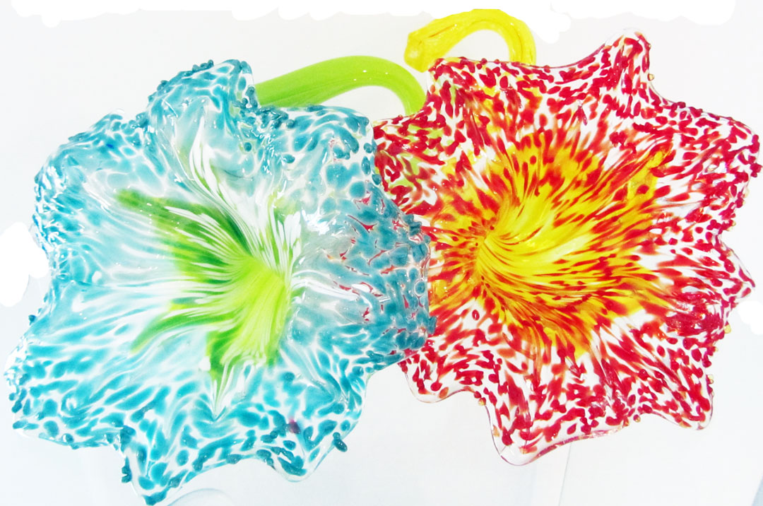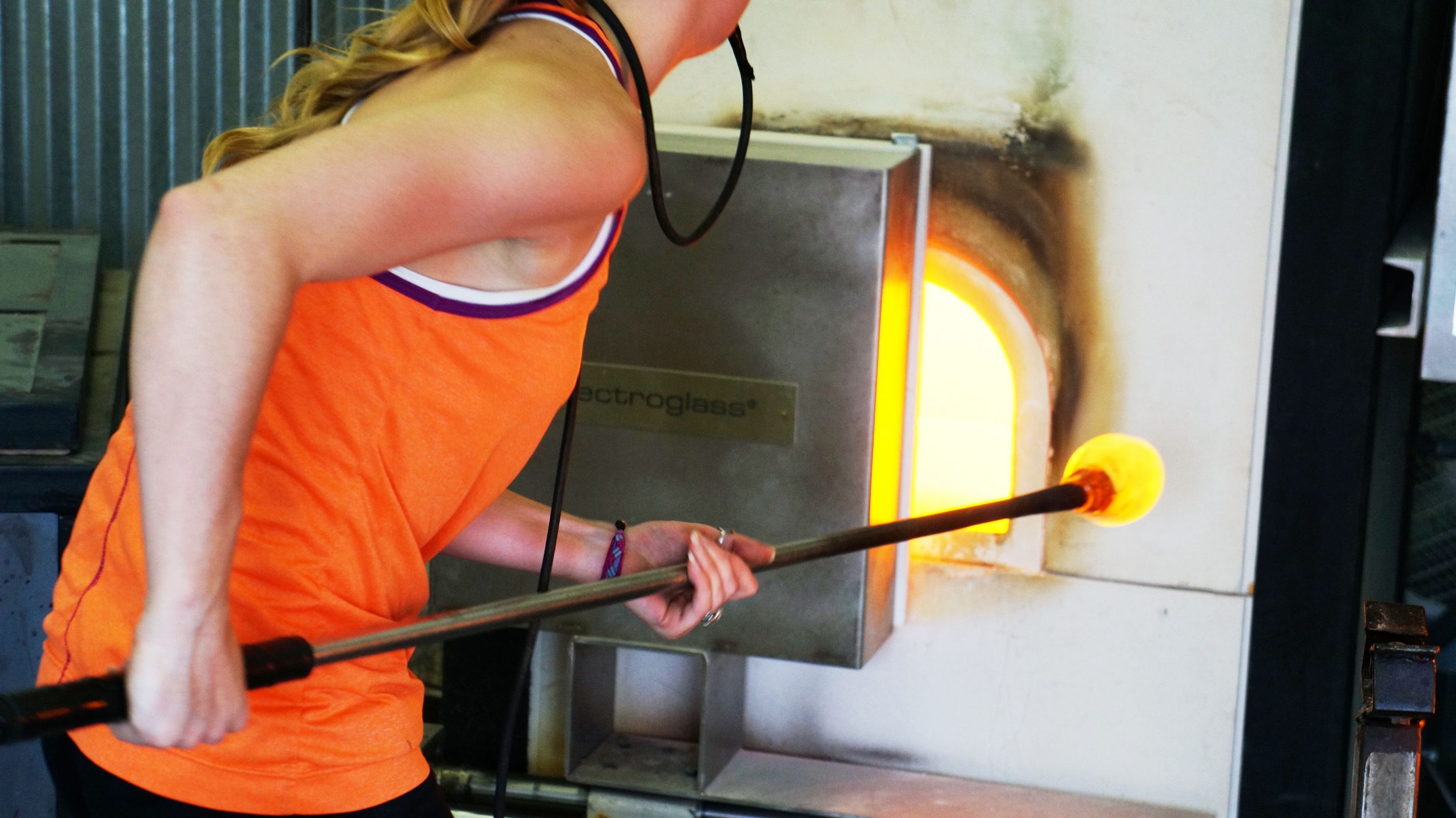 I first became interested in the art of glassblowing during a high school field trip to the Sofa show in Chicago. Then when entering college at the University of Illinois I planned on working towards a bachelor’s degree in glassblowing. However shortly after arriving, I was notified that the glassblowing program was being phased out and they were not accepting new students. I ended up learning the art from another glassblower Todd Manicke who has a studio in Farmer City, IL. I continued my lessons with him throughout my 4 years in college and opened up my own studio in my hometown of Ottawa, IL less than a month after graduating. I have been at my own studio Starved Rock Hot Glass since June 2009. I have a gallery that showcases my unique glass art, and a studio where I offer glassblowing classes from the beginner to the more advanced. Owning an art studio has always been a dream of mine from a very young age and I consider myself extremely fortunate to do what I love everyday!
