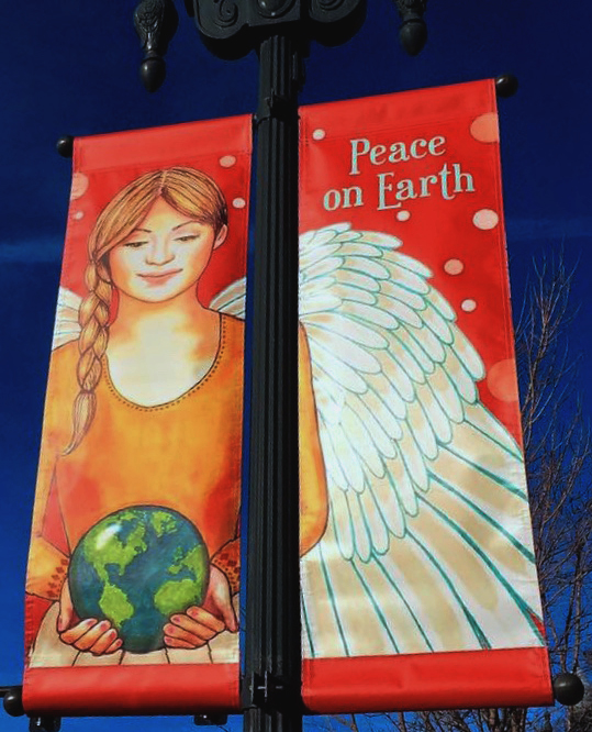 Originally from the Rockford area, I now call the Illinois River/Fox Valley area my home and I especially love the city of Ottawa, IL. Ottawa is a beautiful, art-loving, friendly town just east of Starved Rock State Park in LaSalle County. The city and surrounding area is full of creative leaders working to expand opportunities for the area’s art community. Just last year I was so amazed, humbled and honored that I was approached to design the holiday city street banners for Ottawa, and that not one but three designs were used. Public art is powerful and inspirational; I try to contribute something meaningful or constructive when I can. (Thank you Susan Burton of Art Explorations for believing and helping me achieve that level of professionalism.)