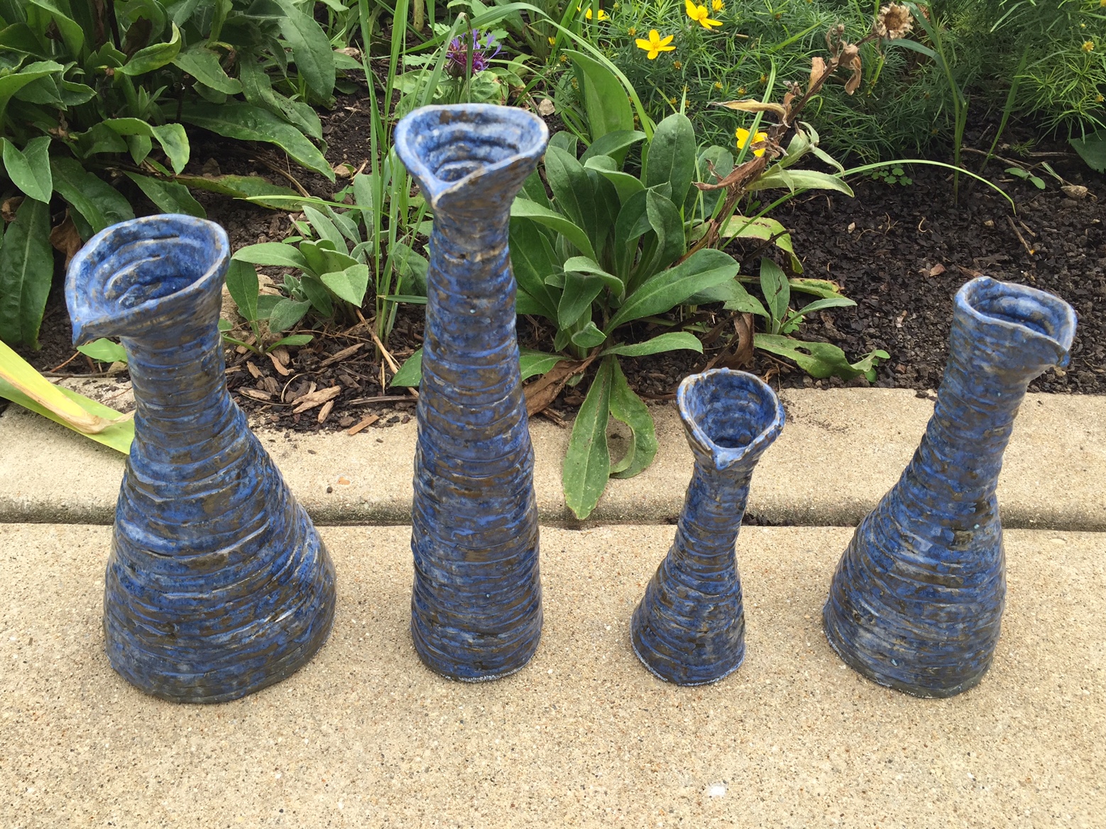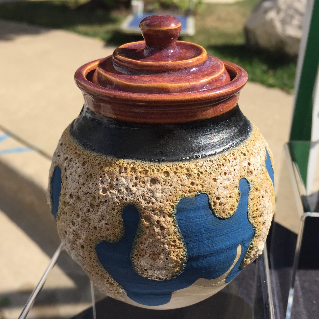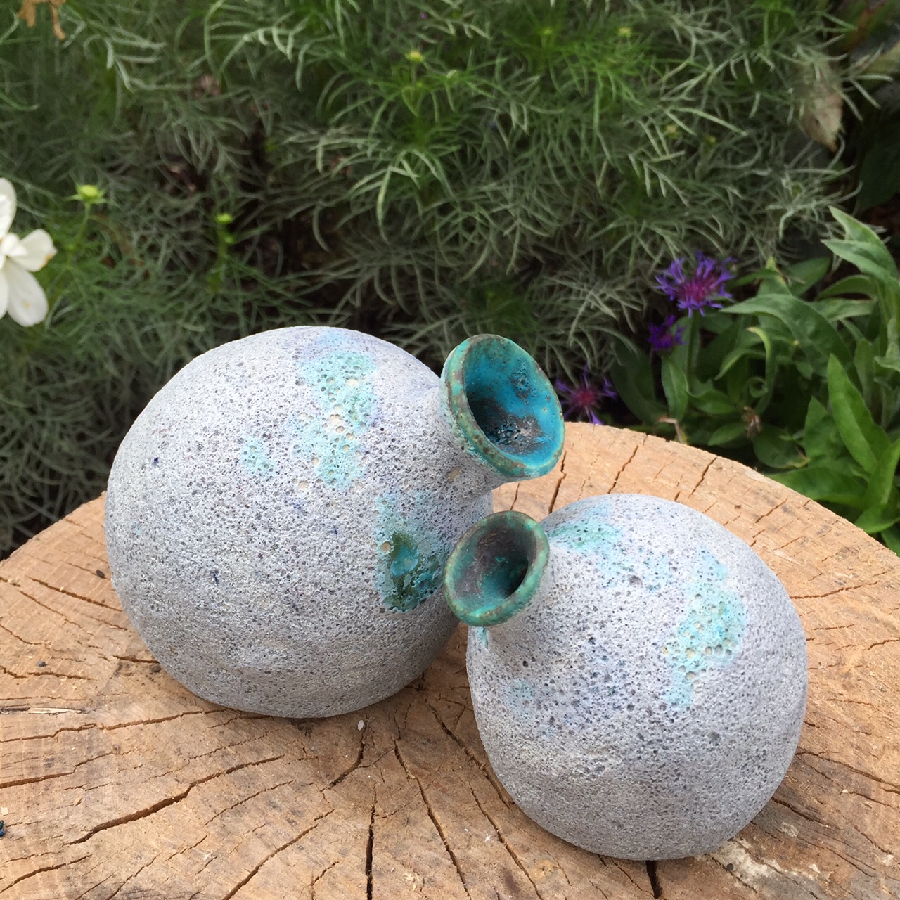I had dabbled a bit in hand building but hadn’t done much on the wheel. As fate would have it, it took merely seconds for me to fall head over heels in love with throwing. That’s where my current artistic narrative begins. From then on, I tirelessly studied glaze chemistry, experimented endlessly with glaze recipes and firing methods and leafed through volumes of ceramics books and studies. I committed my time and energy into developing a unique personal style, concentrating heavily on off-wheel manipulation paired with bold and intense glaze assignment. I’m an undeniable extrovert with a lot to say, and this tactile and primitive medium has become my most beloved outlet for self-expression. It can simultaneously be delicate, precious, messy, precise, loud and wild. The feeling of wholeness and contentment when I work with clay is what tells me that I am forging ahead on the path I was meant to take.