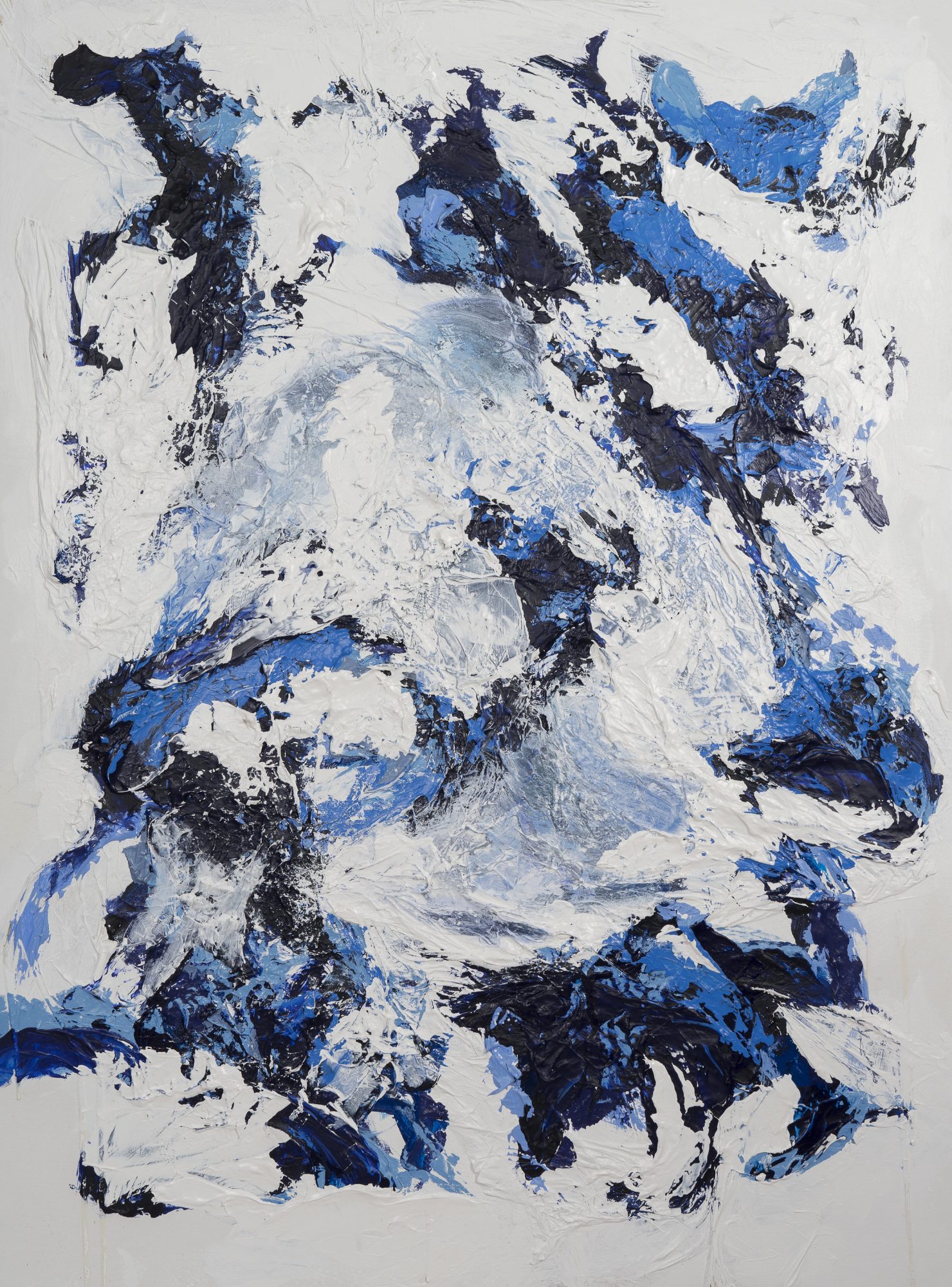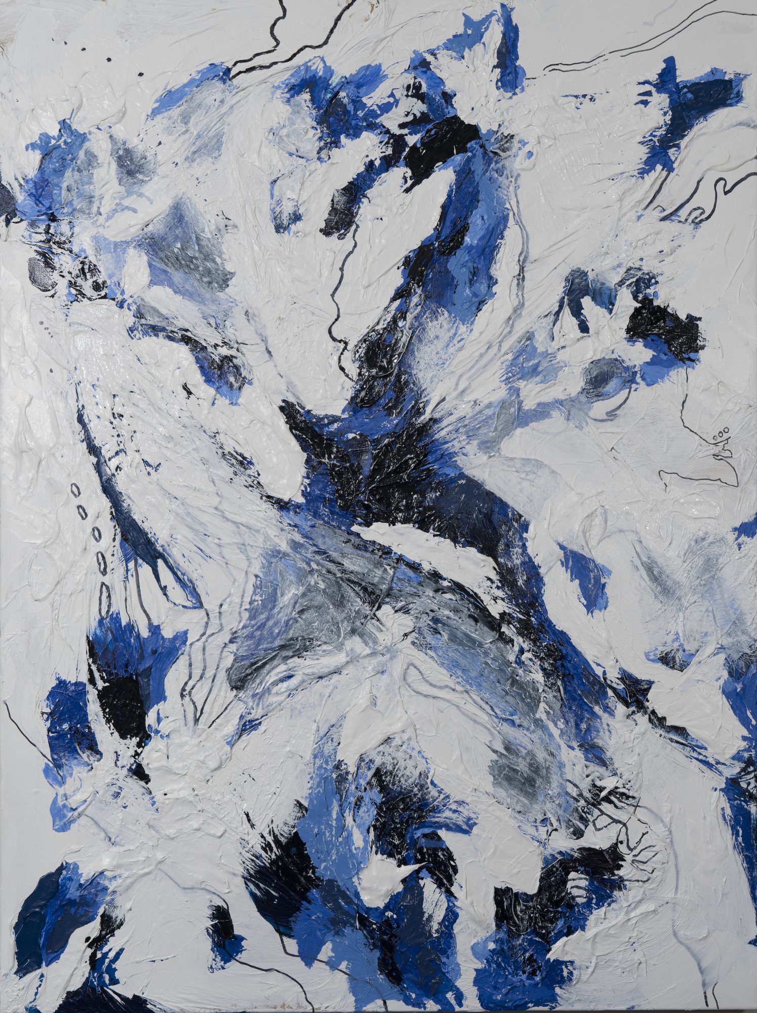 People often ask if this is my “blue phase.” My passion for the color blue began with a pair of navy blue shoes in second grade. I had to have those shoes! And there was other special garment in blue; my prom dress and even my wedding dress was a deep blue. My first painting was black, white and grey. When it was complete I put in three of the tiniest blue lines. I thought to myself, “What if the next painting is all blue? Why not embrace it?” I haven’t turned back since.