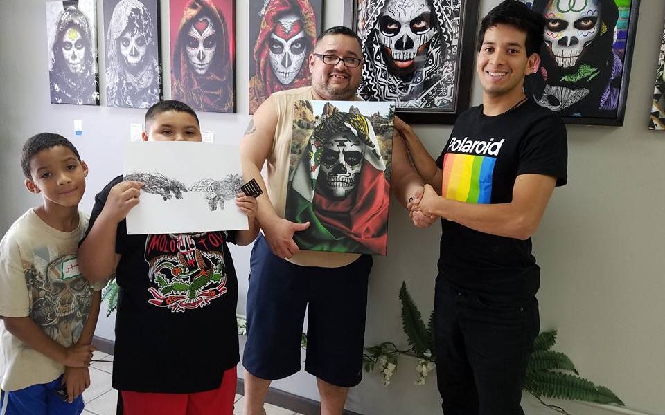 Juan Urueta (Mexican Flag Calavera) , Akouto Vonwogbe (African Calavera), Jessica Lindberg (Pink/Red Calavera), Lindsey Ward (Gold Calavera)