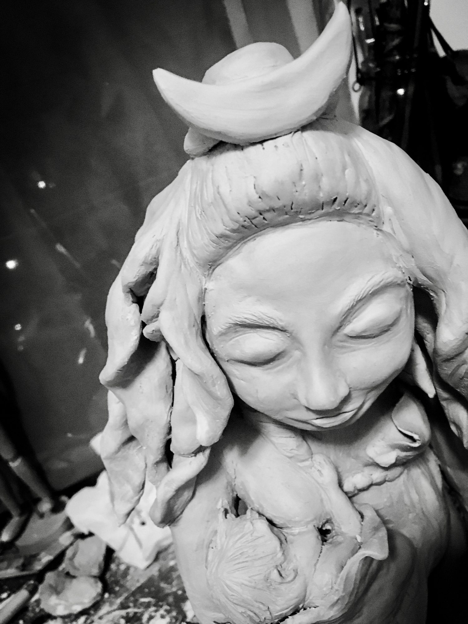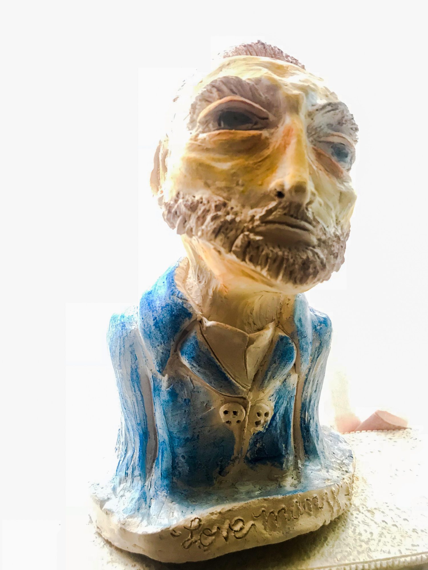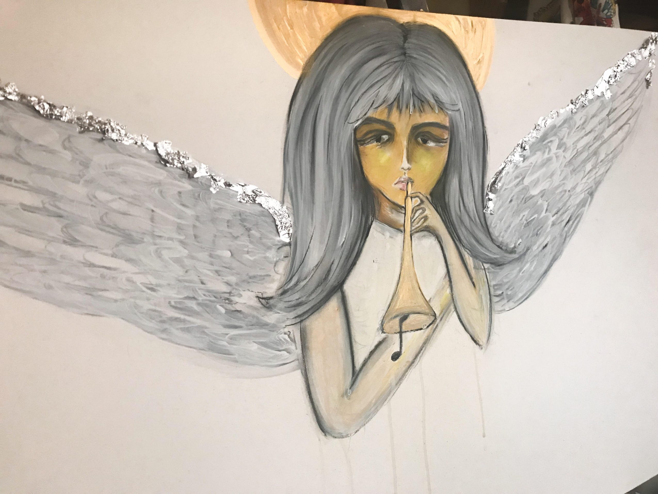Maybe because I am female, a lot of my work is of the female subject and most is extremely expressive in emotion and color. Lately my work has focused more on my personal spiritual beliefs in which I translate the elements into the religious figures – for example, considering Mother of God whom I like to call Good, representing the water element, and she with Will and Love giving light to the fire element, God – two elements that required balance, air, a third element representing archangels and the fourth element being of Earth, us. This idea indicating that we are made up of all of the elements, including the negative energy left from the jealous archangel – this being the demon inside that we fight everyday. My angels, sculptures and poems all very much somehow trace back to religious or faithful beliefs with a message of hope.