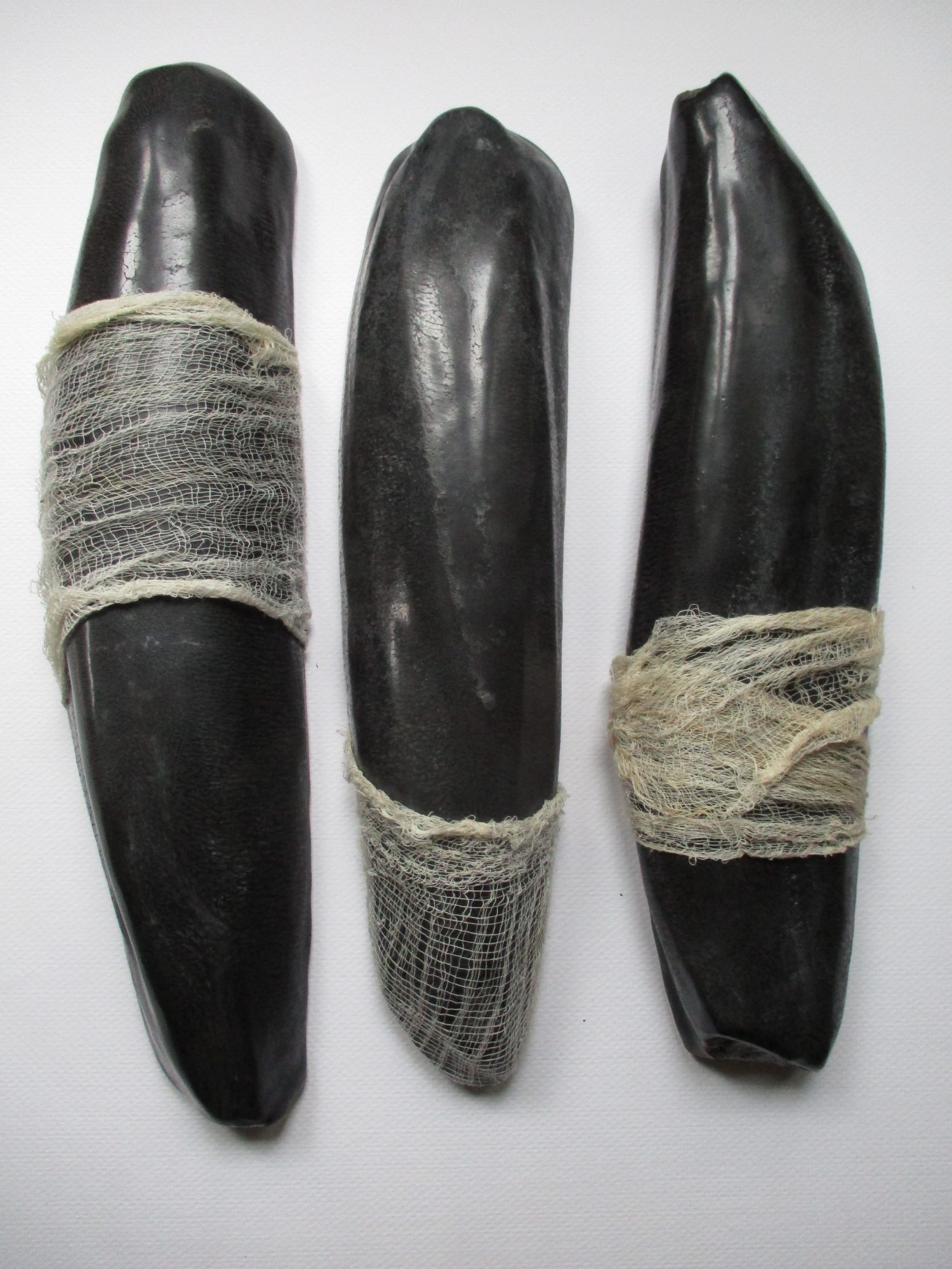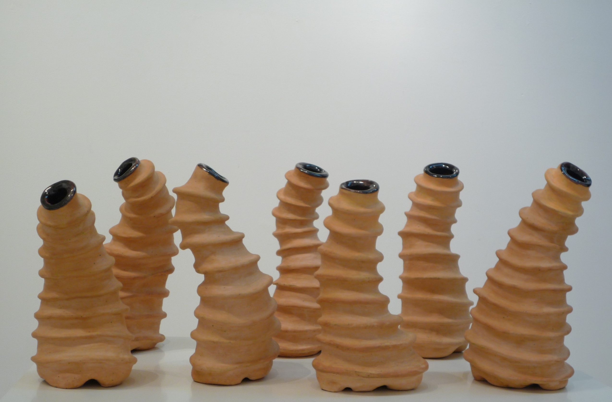 Frequently I work in multiples–creating repetitive forms that ultimately become part of one sculpture or greater installation. My sculptures often convey movement and intention. I love dance, and I think I am often working to infuse life, grace and narrative into these static objects. People have found my combination of materials and organic forms provocative, sensual, unsettling, and even funny.