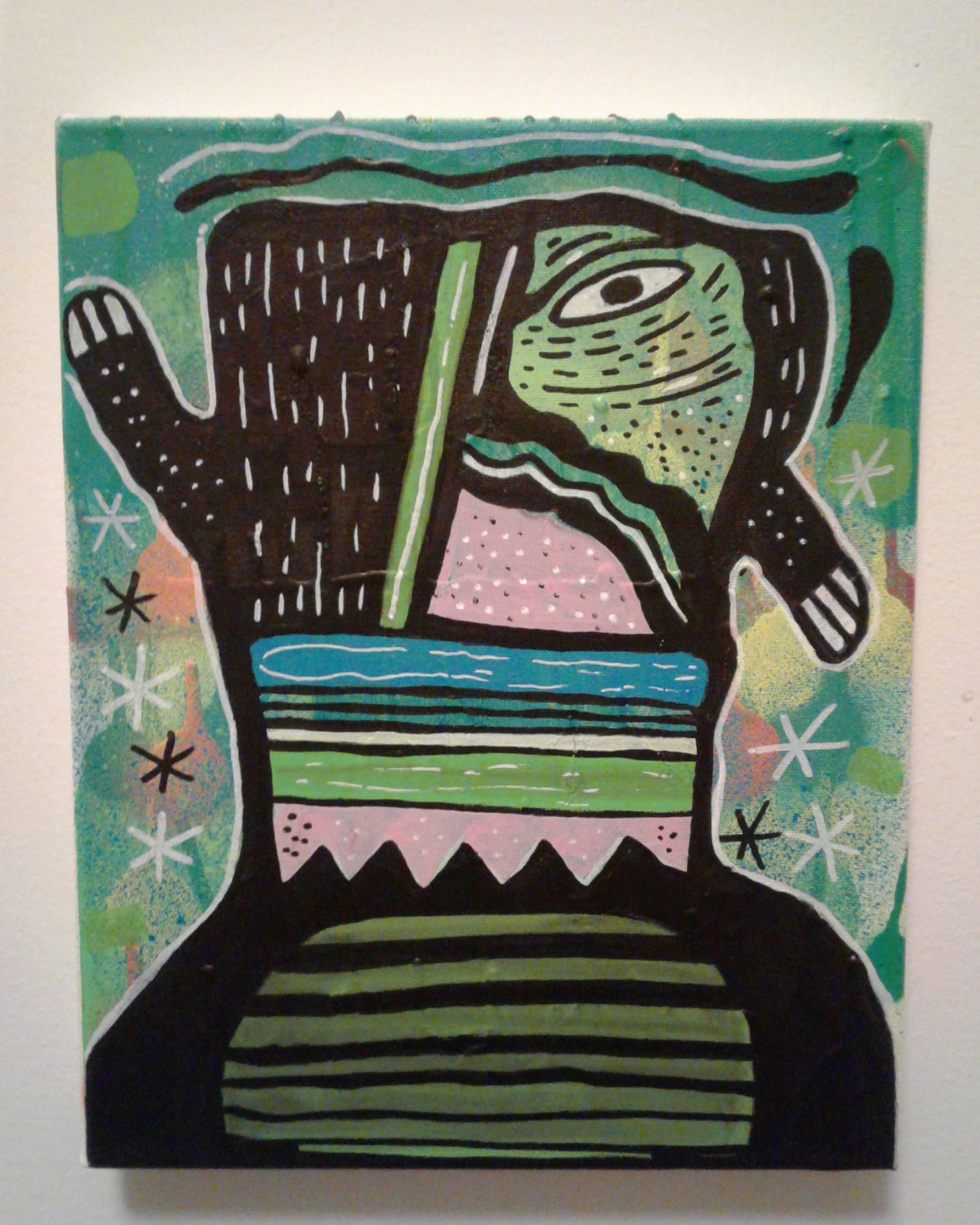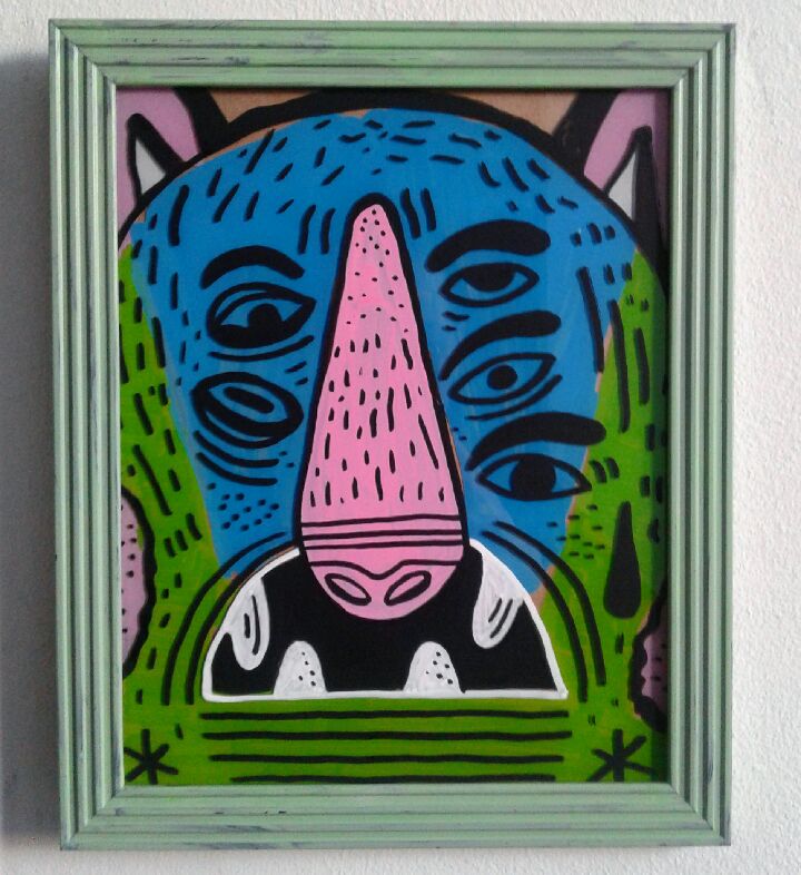 I draw and paint whatever I feel at the moment. Sometimes I plan a piece out but most of the time I just go with the flow. I like creating my own animals and creatures. I’m not sure if there’s a certain message, creating stuff just kind of releases tension and it feels good to just freely express myself. I would like people to see the raw emotion that my work displays. I have no formal training and I consider myself more of an outsider.