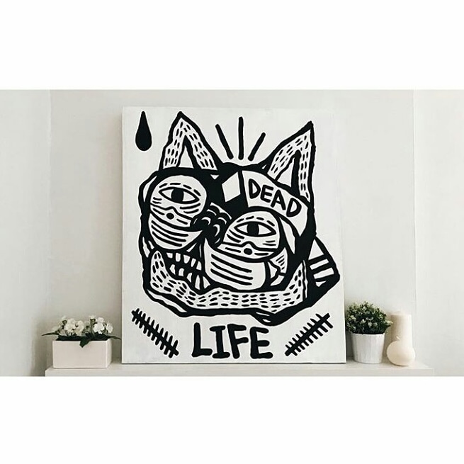 Ever since I can remember I was interested in art. At the age of 16, I started doing graffiti. I enjoyed tagging on things, all things. I wanted to be everywhere in the city. It was like a disease. But I had to eventually slow down on being a vandal. There were a few arrests along with some graffiti wars that got pretty violent. Spending time behind bars and violence wasn’t what I wanted from life. I eventually started drawing and at the age of 21, I started to turn my doodles into paintings.