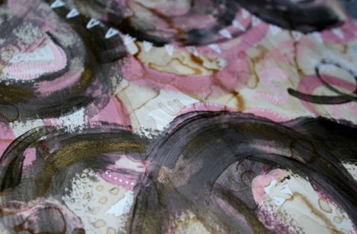 I paint mainly with acrylic, watercolor, and use coffee stains to age certain pieces. I’ve gone as far as to create abstract paintings with days and days of coffee, different coffee brands, and even piping hot coffee. Each style carries a unique outcome. I’ve played with the stains of whiskey, red wine, green tea and have even added sugar to acrylics for texture too. I’m adventurous when it comes to household items. I merge them into my paintings because it makes it more original, and carries more of “me” in them. I also do photography, using abandoned spaces and nature while it’s dying to tell a story.