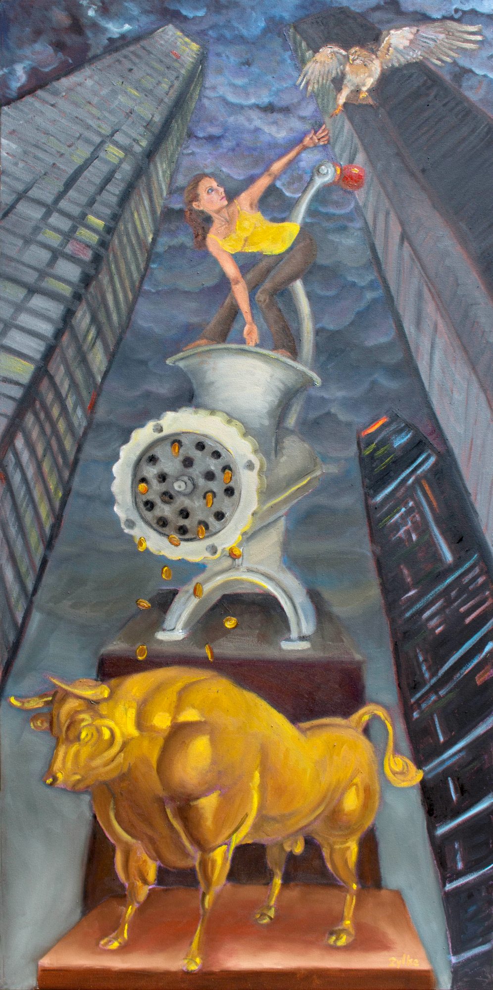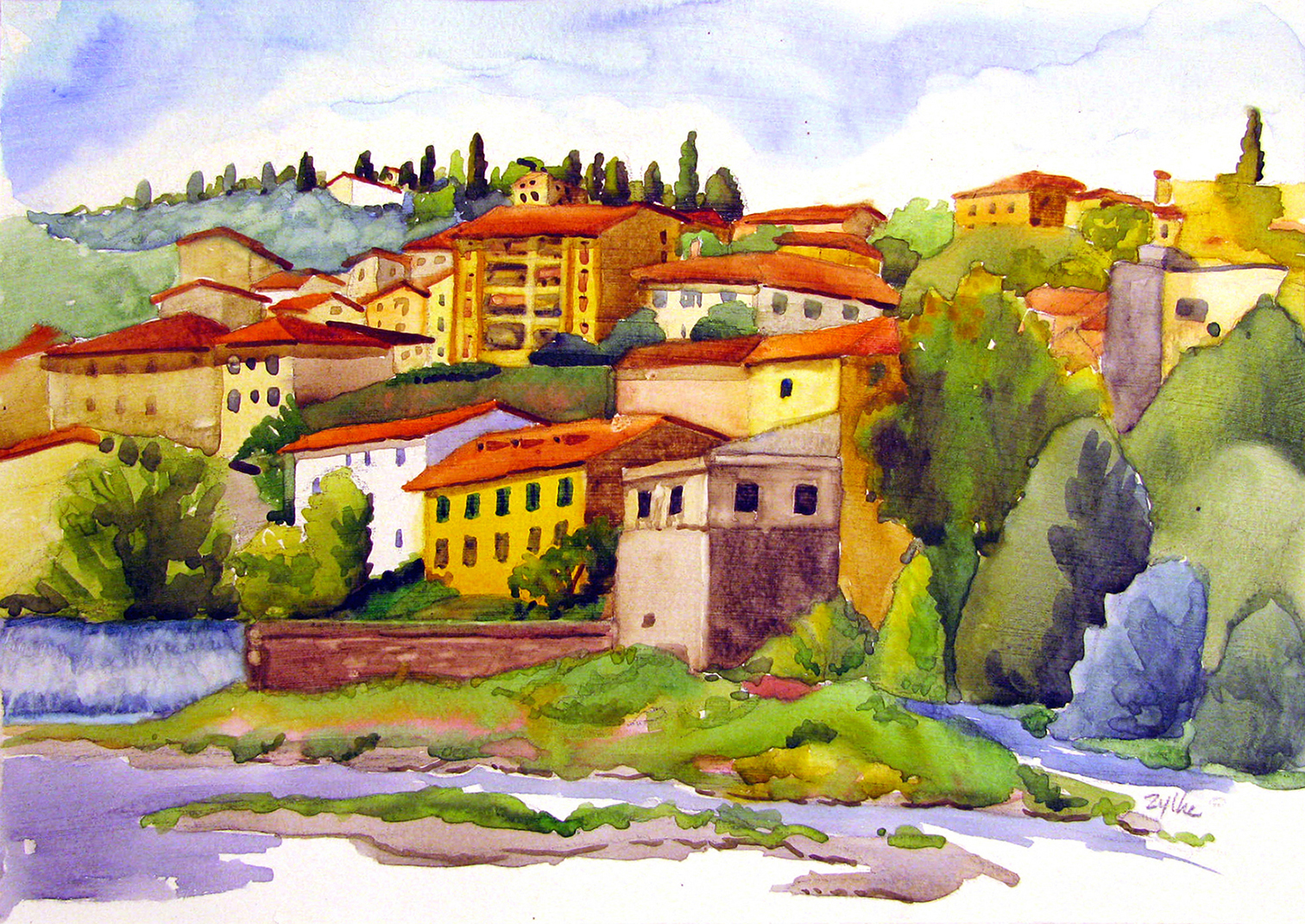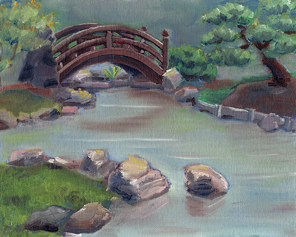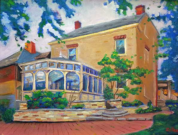 Lately I ‘ve been doing a lot of small postcard-sized watercolor plein air paintings, both in Chicago and while traveling. I’ve been commissioned for many house portraits. I also paint with oils in a somewhat surrealistic or narrative style; these works are more expressive and from the heart, inspired by poetry, music, or the trials of everyday existence. I hope that by painting about my specific travails, I will inadvertently touch on universal themes that viewers will connect with. And that my painting based on my trips will inspire people to travel. One of my most recent sources of inspiration is a group I belong to, Chicago Artists Interpret Shakespeare: I find Shakespeare’s plays richly visual, and they never fail to spark something in my imagination. The group’s traveling exhibitions have reached nine different galleries so far and are evolving into shows on American Literature as well.