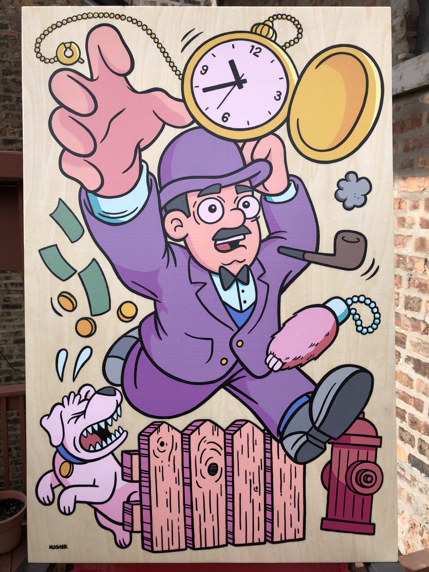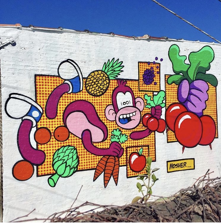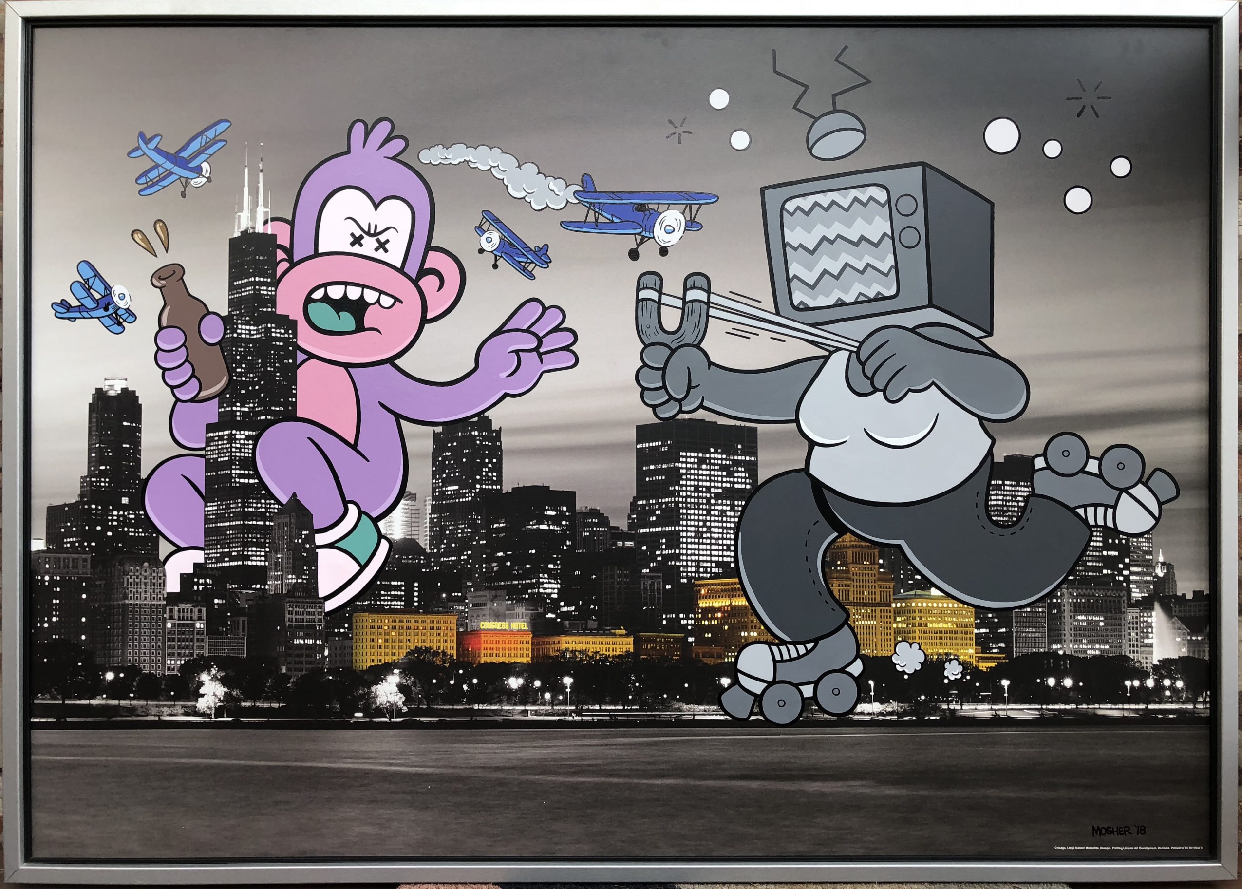 Mosher is a Chicago based artist/muralist living in beautiful Logan Square. Having painted several murals in the city, his trademark monkey character and vivid, comic book like painting style have become an iconic part of the burgeoning Chicago mural scene. His work can be found in numerous cities including New York, Colorado, St. Louis, Miami and St. Petersburg.