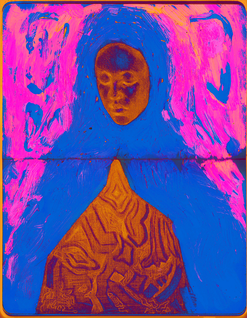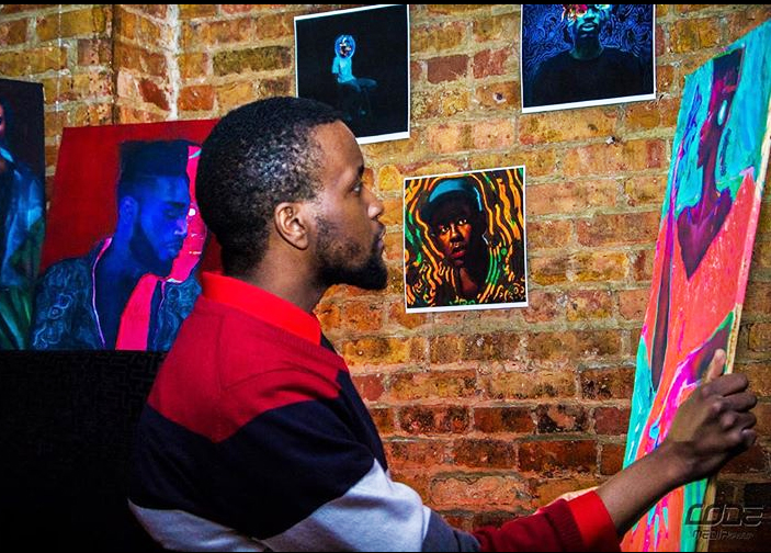 Even though I go back and forth with these mediums, the consistent subject matter(s) are people of colour and I render them into vibrant, neon like portraits surrounded by distinct African inspired patterns as a call back to my African heritage.