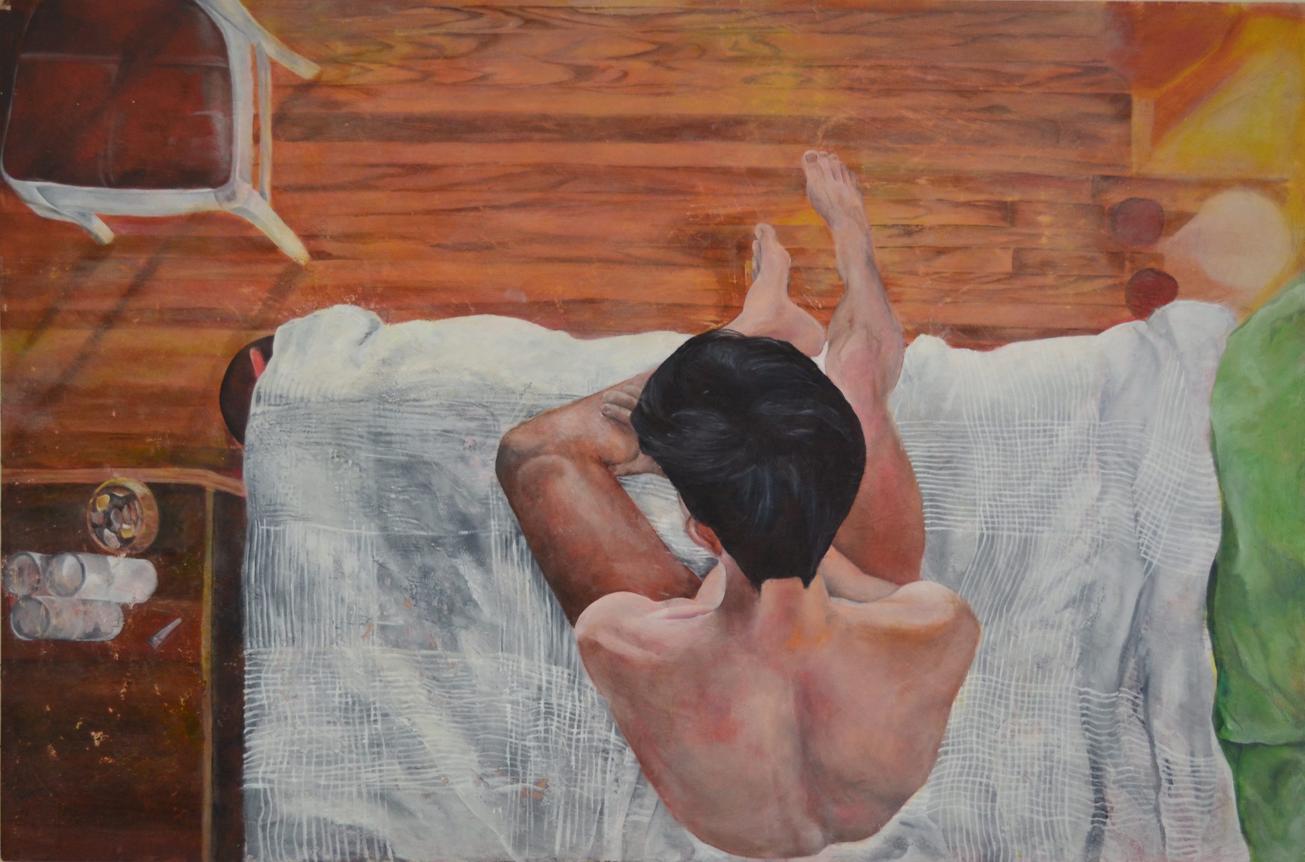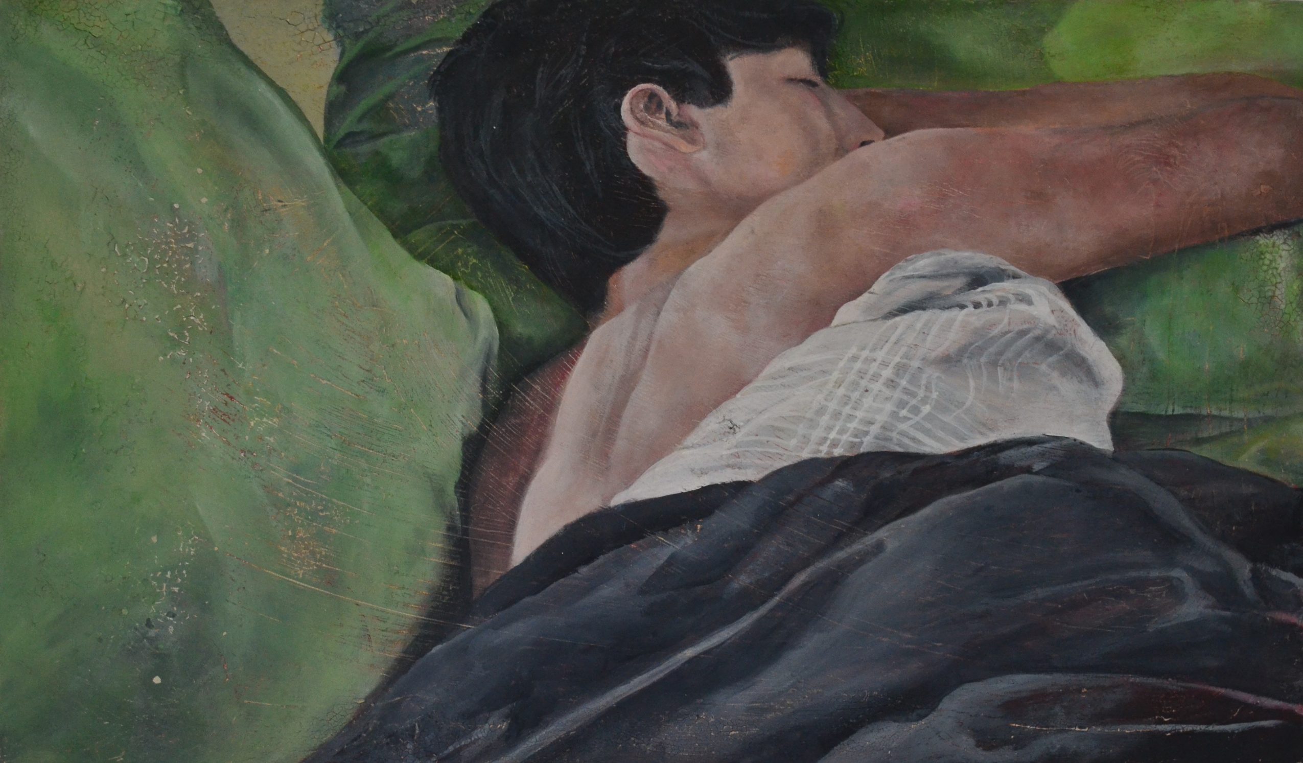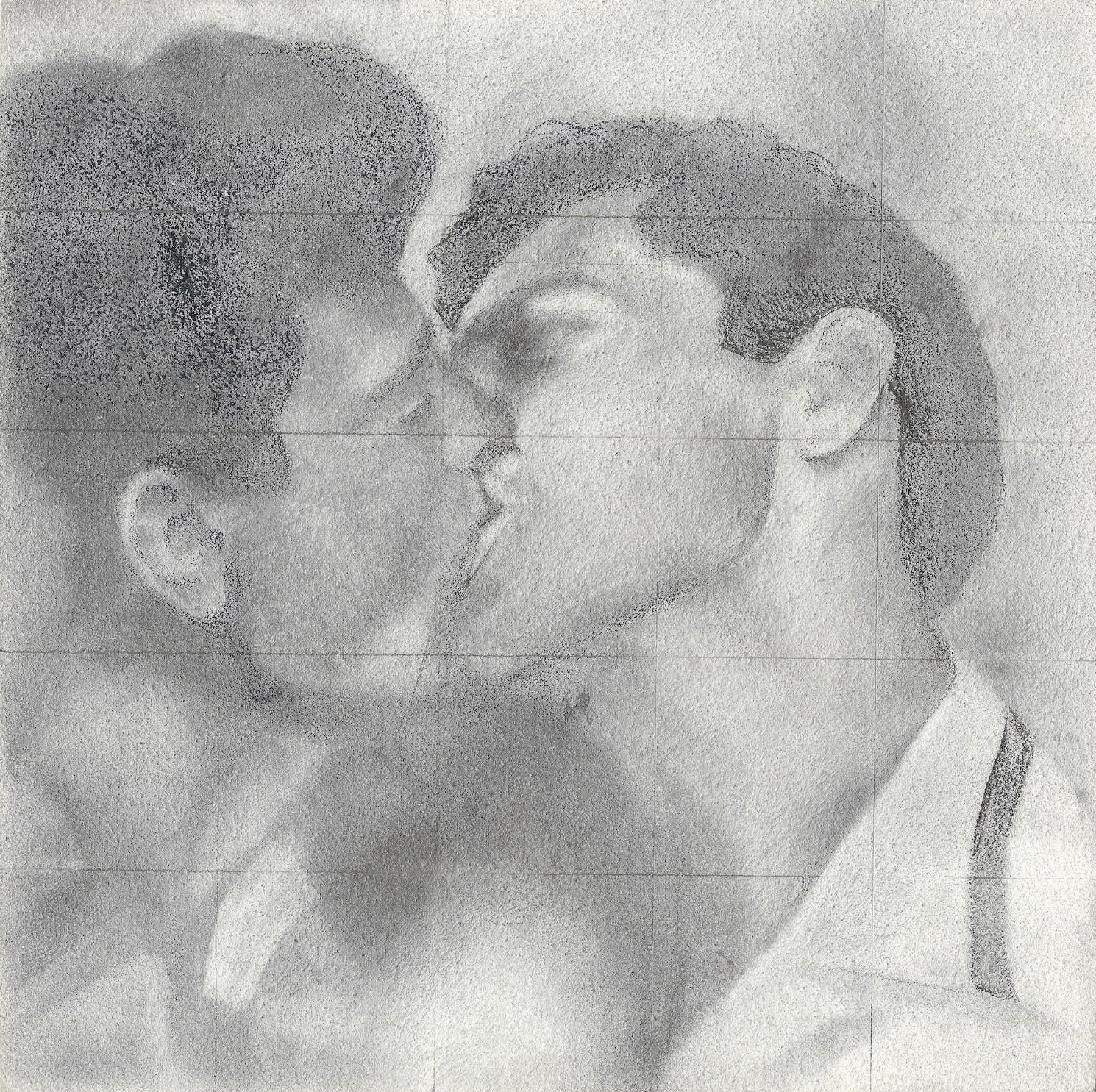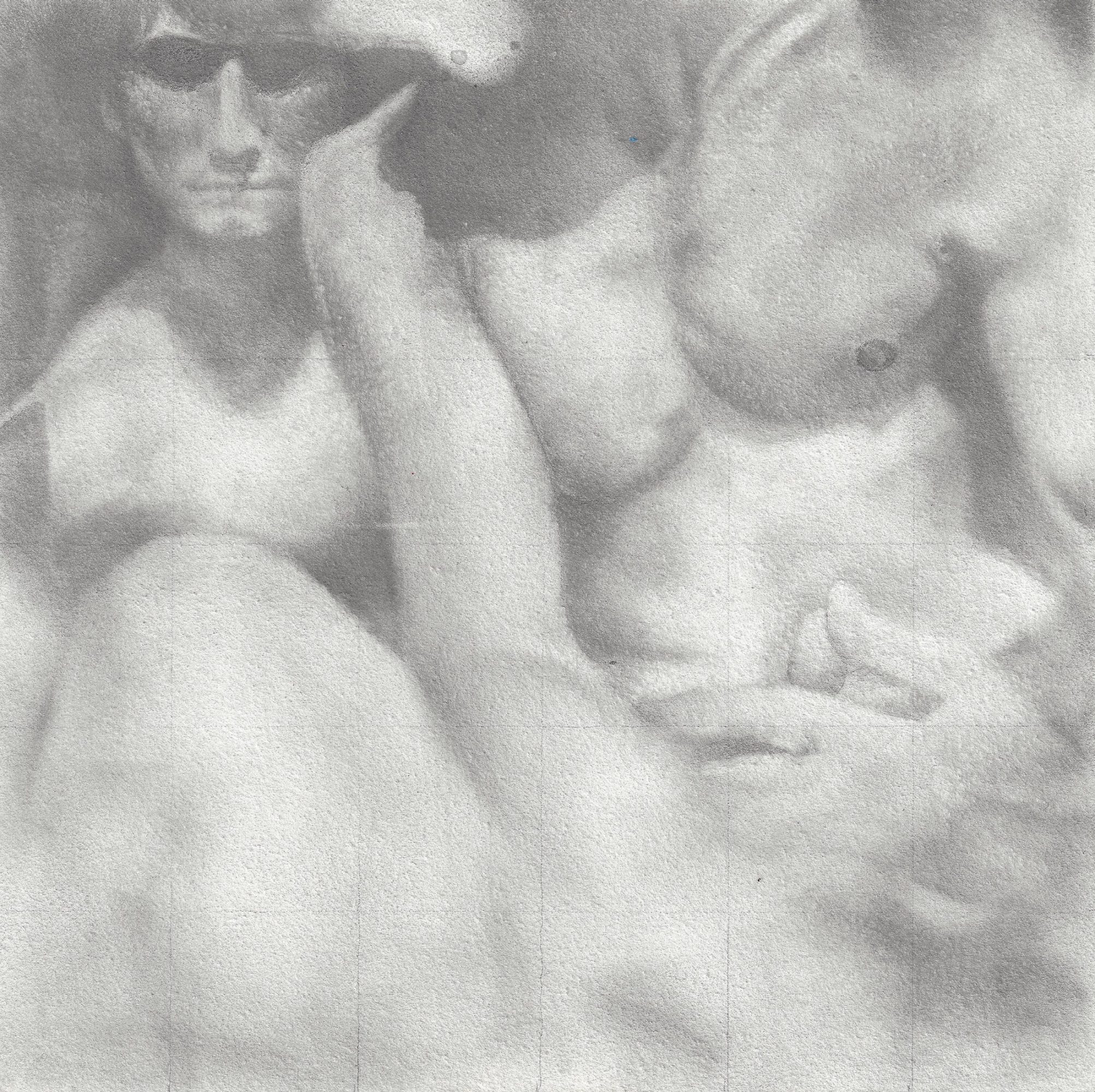 My most recent body of work explored the history of gay-male relationships. I scoured archived of photos and found candid images of gay couples from the past. I then selected portions of those photographs and recreated them as drawings. Queer history, and my place in it, is fascinating to me because it is a lineage and heritage that is not passed down genealogically.