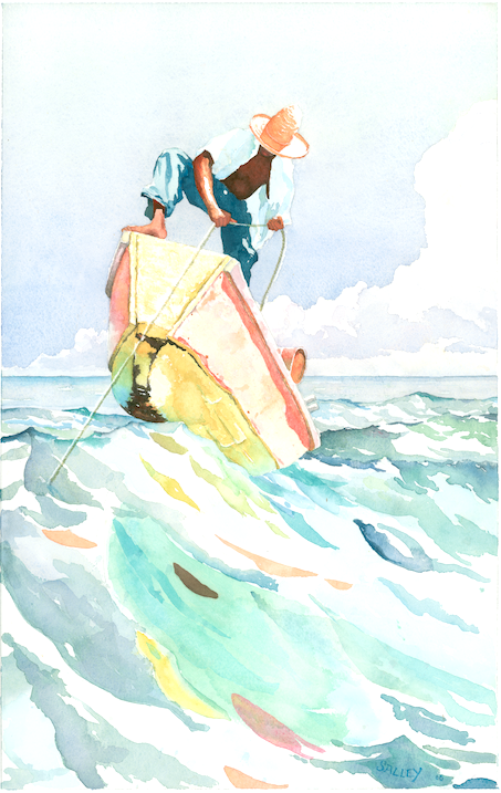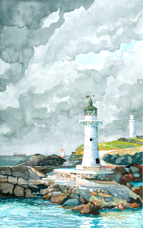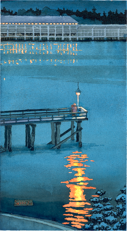 I like to paint people who are doing what they do to get along. people at work are the most interesting to me because it’s too easy to forget that everything surrounding us which we lay our eyes upon is all the product of a lot of hard work. to me…that esoteric reality is very “paintable” …while the actual colors and forms that can be found in and around working folks is esthetically inspiring. often…. when the band has been on tour for a long time…I will unwind from the rigors of the road by making a painting on days off between gigs. it’s a little like spiritual crop rotation you know. watercolor has turned out to be my main approach to painting because it is so portable and dries as soon as it’s done. I always paint outside with my subject directly in front of me. a couple of notable things: one…you could be standing at your easel on the roadside working away…dressed in just a gunny sack with Starbucks cups for shoes…. but if you’re wearing a tie…only the bravest of brave onlookers will step up to you and start a time-consuming conversation. (those can be quite scalding if you’re in the middle of something like a quickly drying graded wash for your sky). the other: many artists I talk to say that they wish they could paint more but they just can’t cut the time loose from “work”. it would be wonderful to hear something like just the opposite more often.