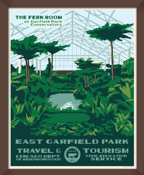 I’ve been creating art under the brand “The Chicago Neighborhoods” since November of 2011. I was stuck in a rut at my 9 to 5 design job at the time, needed a creative outlet, and wanted to come up with a personal project that would allow me to continue my growth as a designer without the typical constraints of client work. I started by creating logos for the various neighborhoods in the city, which I’d post on my website, along with a little bit of history about the neighborhood. I got a little burnt out a year and a half and 115 logos later and started to look to evolve the project. The logos were all created black and white, so the next logical step was to add a little color to the project. In 2013 I started working on a series of “Neighborhood Tourism” prints that were inspired by the WPA National Park posters that were created in the late 1930s.