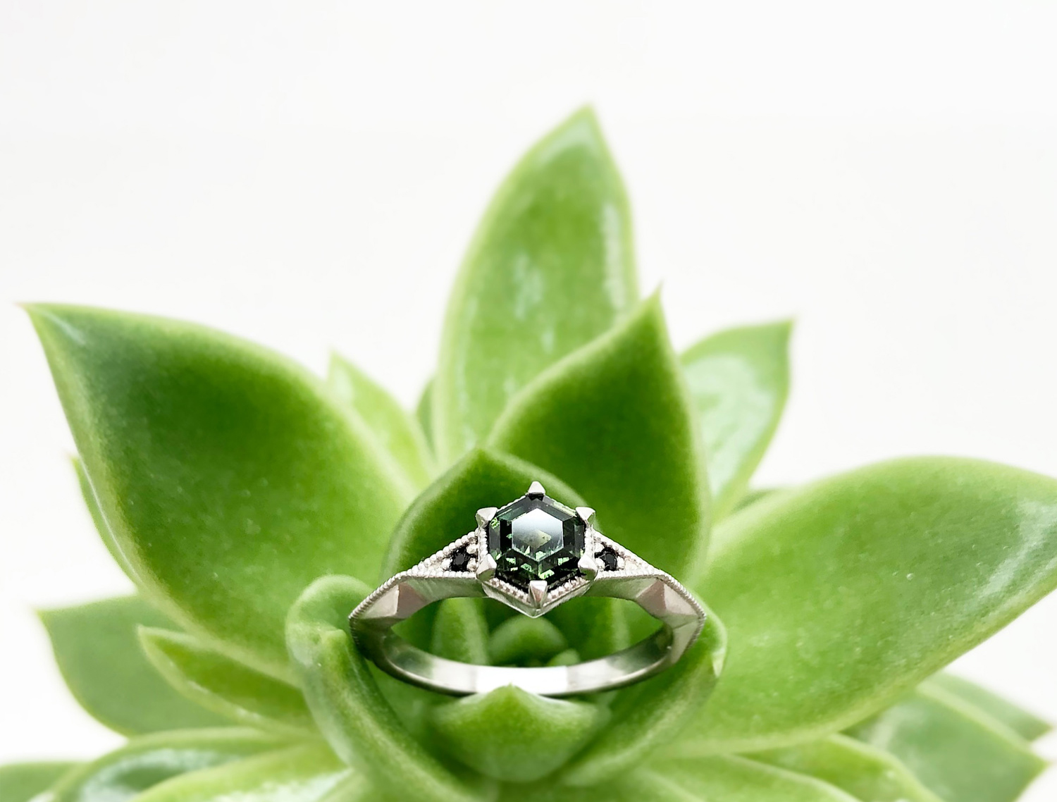 On the surface, I create fine jewelry inspired by the shapes around me and beyond me. Space, the sea, unusual foliage, sci fi worlds, geometry and architecture are some of my main sources of inspiration. I like to create balance in opposing structures, create symmetry out of asymmetry, and incorporate non-traditional gemstones. I create my own line of jewelry along with custom designed pieces such as engagement rings and wedding bands. But beyond that, I try to create pieces that inspire you to wonder and to remember that sense of awe you feel when you, let’s say, see the Aurora Borealis for the first time. And above all and most importantly, I also create relationships which I value the most from my work. Jewelry can be seen as an unnecessary luxury or excessive purchase but for me it’s a memento; a visual reminder, representation, or even talisman of something or someone that has made a meaningful impact on your life. It’s used to celebrate or commemorate that moment or person and I get to help create that connection whether it be between you and the piece or between me and you, or both! I’ve made many great friendships through my jewelry career and that’s a big part of what keeps me making.