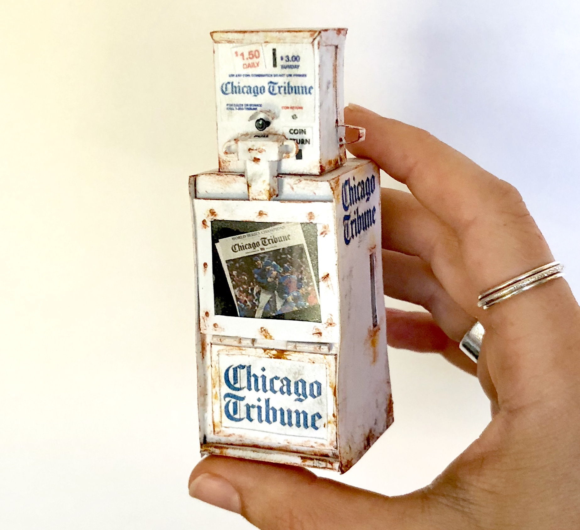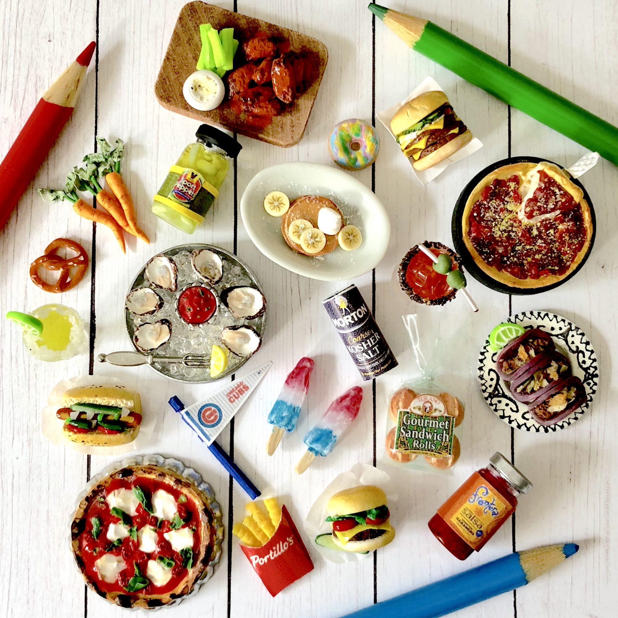 After discovering this new window of opportunity, I dove into my longtime passion for art. When I was five years old I was telling everyone that I would be an artist someday, and though my interests changed from time to time, I ultimately fell back into my artwork after discovering miniatures. I stumbled upon pictures and videos of artists creating tiny food made of clay, women that were decorating and filling their dollhouses with mini furniture, and model train enthusiasts creating their own small worlds. I was hooked. This form of art reminded me of that familiar feeling of endless possibilities! I also discovered the world of food blogging on Instagram and decided it would be perfect to start replicating all of the delicious food I was seeing from Chicago-based restaurants and brands in miniature form! I love being able to replicate anything that strikes my attention, or something that I truly love – like a tiny Chicago-style hot dog, or a mini deteriorated Chicago Tribune newspaper box. My childhood dream of becoming an artist became the best reality I could ever ask for!