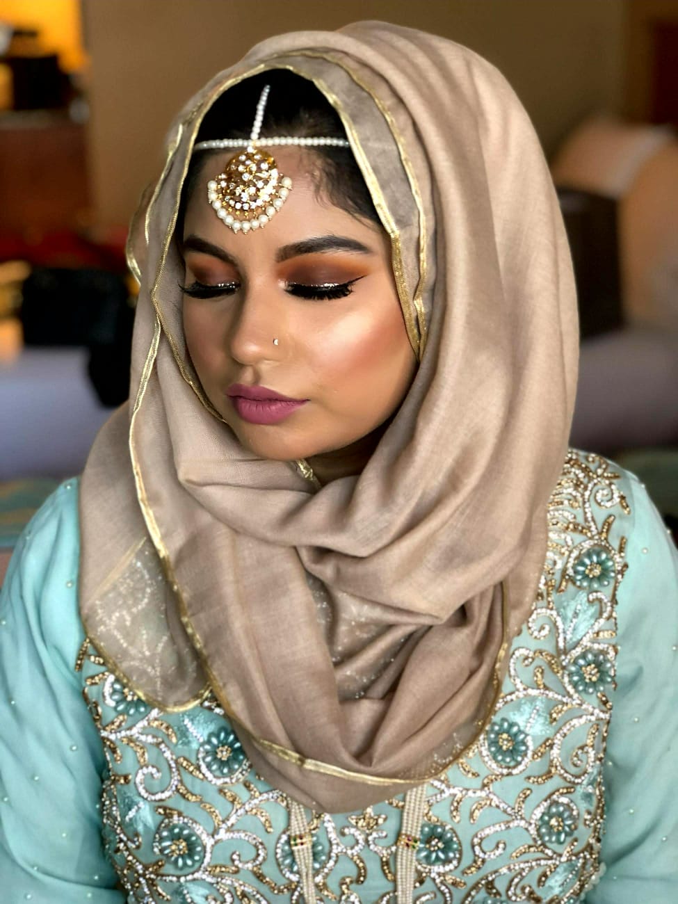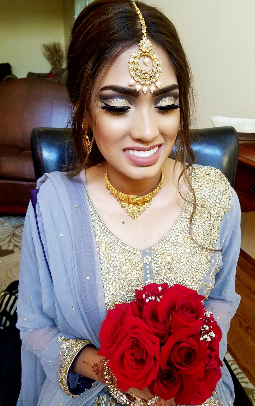 I am a free-lance makeup artist in the Chicago Suburbs. I mainly specialize in party and bridal makeup, and am willing to travel around the suburbs to my clients if needed! While most of my client’s request looks for Pakistani or Indian wedding events, I do makeup for any event. It is a privilege to be chosen to do someone’s makeup so I always try to have pleasant interactions with all my clients to supplement the joyous mood associated with the event they’re getting ready for! I take pride in actually listening to my client’s requests and problem areas. I love focusing on a client’s best features and helping them to enhance their look while still feeling like themselves! My favorite part of the overall look is creating unique eye makeup looks which I think sets me apart from other makeup artists. Each eye is like a canvas for me which I can use to complement their outfit and look. I take pride in doing my best work on every client and making sure they are satisfied with their finished look.