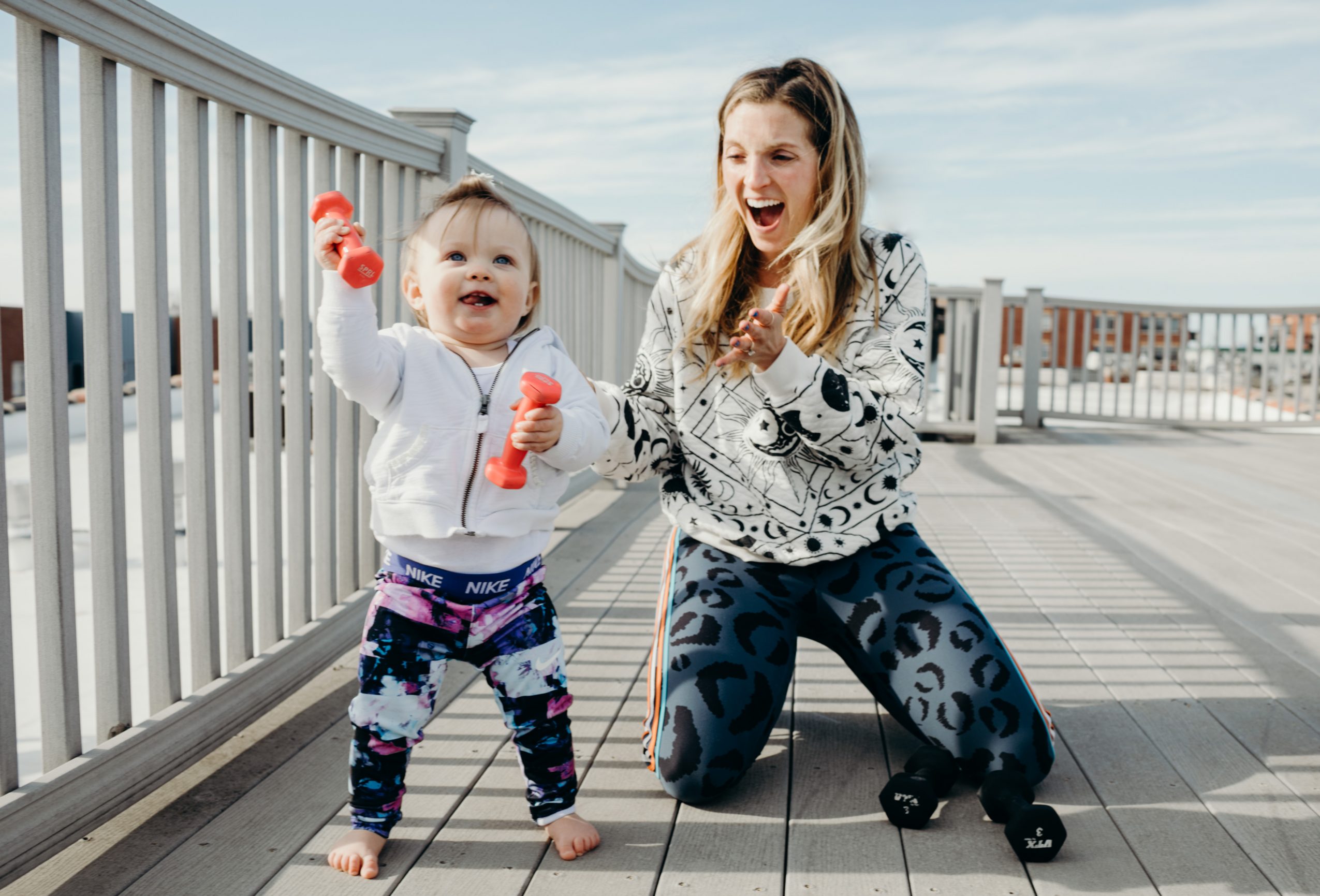 I was living in NYC teaching fitness and Pilates and traveling every weekend to teach masterclasses. I got to work with the most incredible studios and teachers in the world including Tina Thompson (Pilaballet), SLT, JoyRide, and Ride/Reflect to name a few. I worked closely with these brands to train and develop the instructors. During this busy time, Nike was hiring instructors to teach a format Nike Training Club. I got to be part of this talented team of athletes and fitness presenters for two years. In 2014, I moved to Chicago with my husband and continued to work for a Megaformer studio “Chi50,” as well as teach dance classes at Nike Studio downtown. Currently, I am developing my method in a dance-based interval class. But my favorite teaching job so far is showing my one-year-old little girl Aven, how much joy music and dancing brings!
