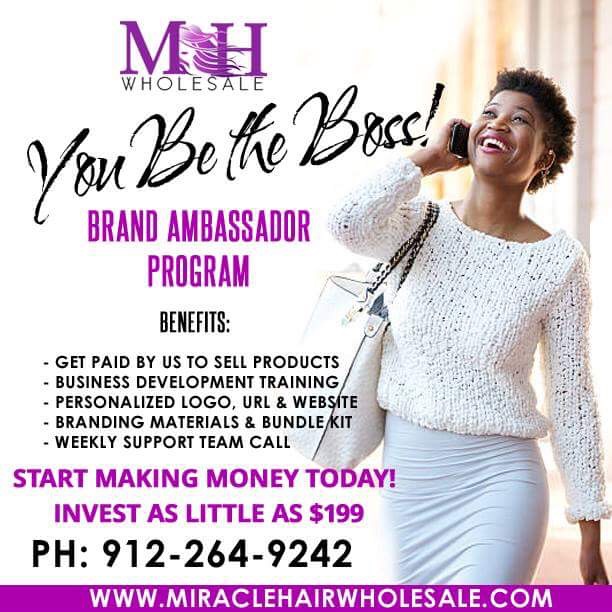 After opening the doors to Miracle Hair Wholesale, there was still room for others to become entrepreneurs. In May 2018, the You Be the Boss Brand Ambassadors Program was created to people jump start their businesses, gain inside knowledge of the hair industry. Each week, participants receive weekly coaching on how to sell the hair, gets valuable tips and nuggets from LaShawn Walls; Brand Coach and manager to Shashicka, gain successful hair industry tips and more.