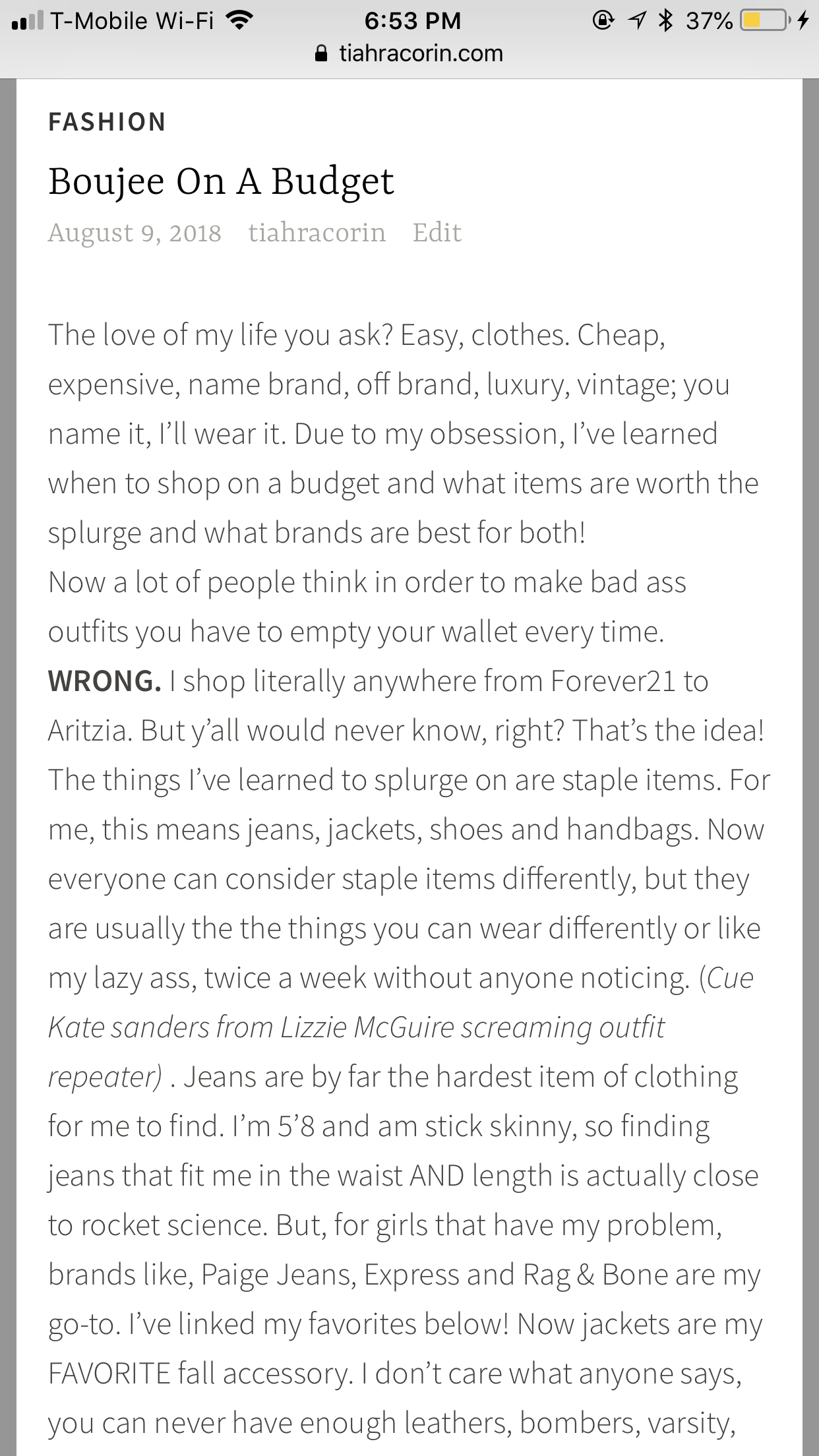 What I’m most proud of during the whole process of creating tiahracorin.com is honestl, just staying authentic and true to myself. More often times than not, I’ll read a blog post of a girl I totally think has a bubbly, sarcastic personality from what I’ve seen on social media or from actually meeting them and I’ll read their work and be so confused why they try to cover that up! I want the sarcastic, witty humor that you project in real life! That’s what makes you, you. And that’s what I want my readers to get from me. I want them to read a piece of my work and say “yeah, that’s totally Tiahra” or “I can hear her saying that” otherwise, you’ll never get set apart from the rest