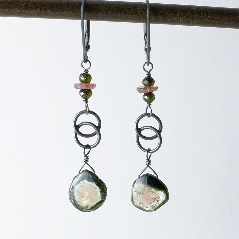 My business began in 1990 to provide a flexible lifestyle with lots of time for travel. I began making jewelry and selling it to friends and on college campuses. I would often have a table sponsored by the environmental group or women’s group at a university and in return, I would donate a percentage of my sales. I continue to give back to organizations that I believe in through studio fundraising events. While traveling nationally, I would look for stores to carry my line and some of these shops still carry my jewelry almost 30 years later! Wherever I went, I always brought a small suitcase full of jewelry on my travels to help offset expenses. I even did home shows throughout Europe in the early 90s!