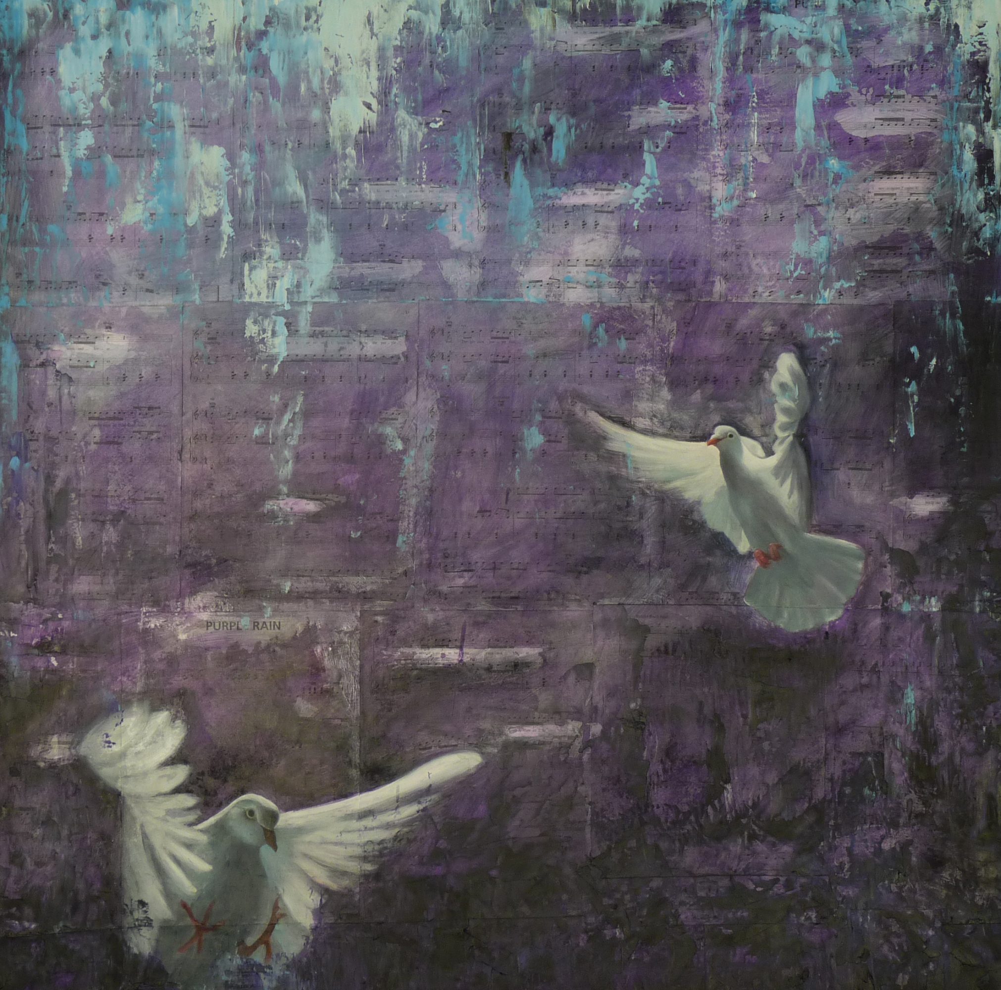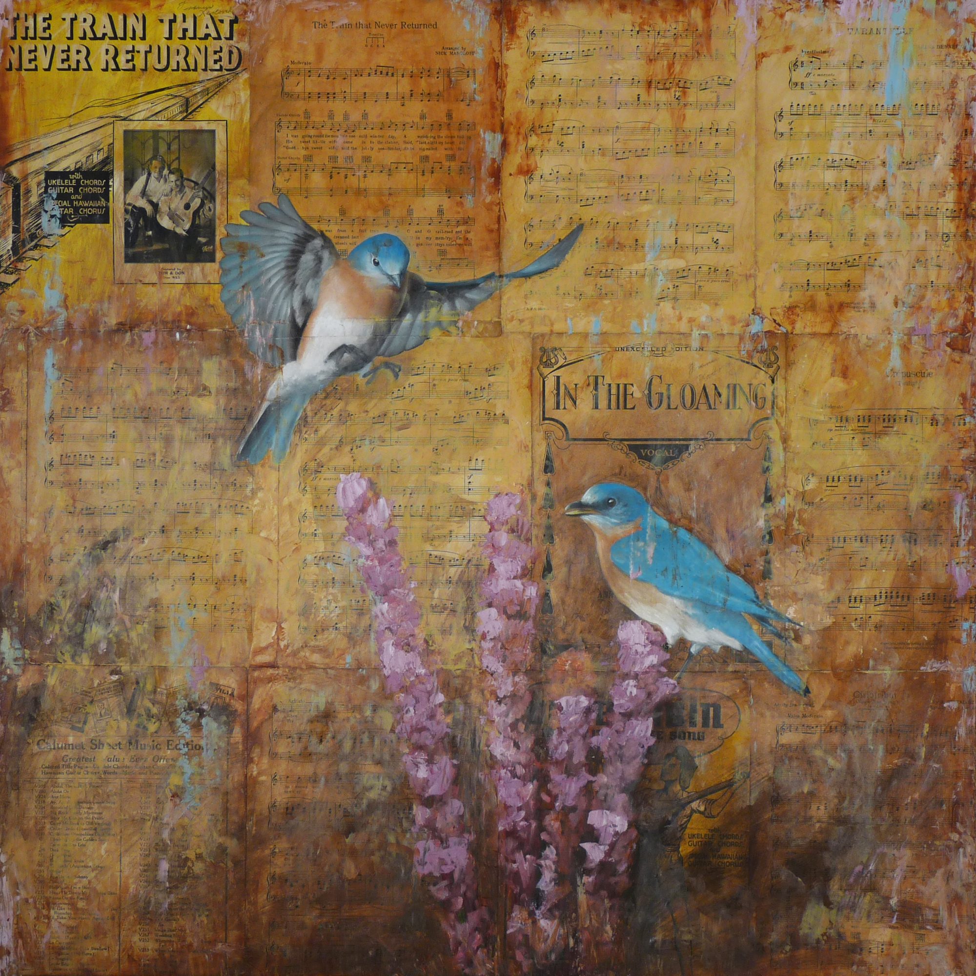 2. Birds painted on vintage sheet music