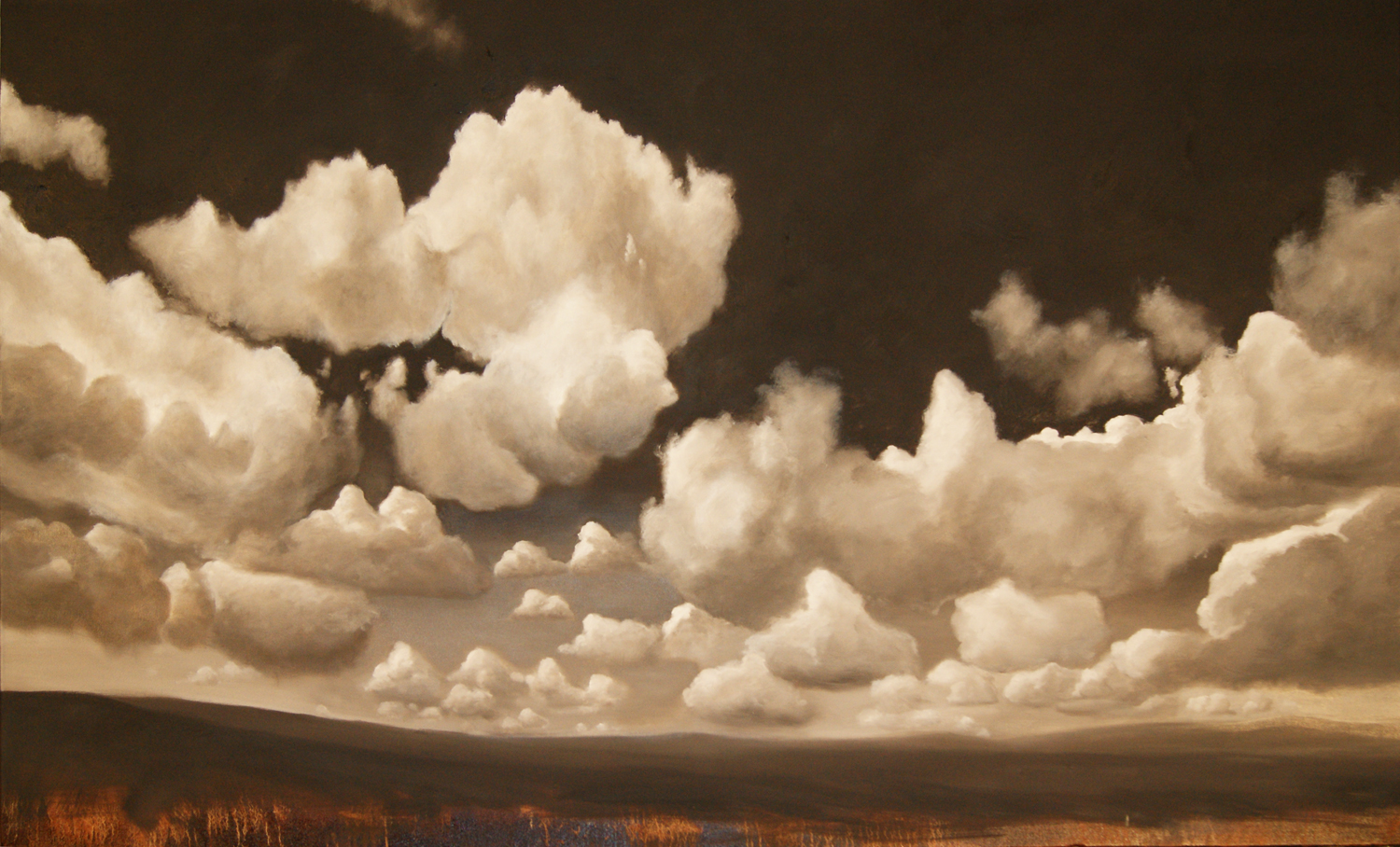 Even though I was on morning television several times, had articles in several magazines, and used my marketing know-how to the best of my abilities, I still couldn’t pay the bills. That didn’t happen until I randomly met a professional painter who said that if I wanted to make better money, I needed to learn how to paint and get into galleries. It was October of 2004 that I purchased a set of paints, a bunch of canvas, and began painting clouds and trees. In February of 2005, the emerging artist gallery Art One took my first few 60″ x 48″ paintings and I was suddenly a gallery artist after only painting for a few months. As the seasoned marketing professional I was, I sent out a newsletter to my database announcing the event and that aforementioned rock star, who was actually a big client of the gallery, went in and purchased my first painting.