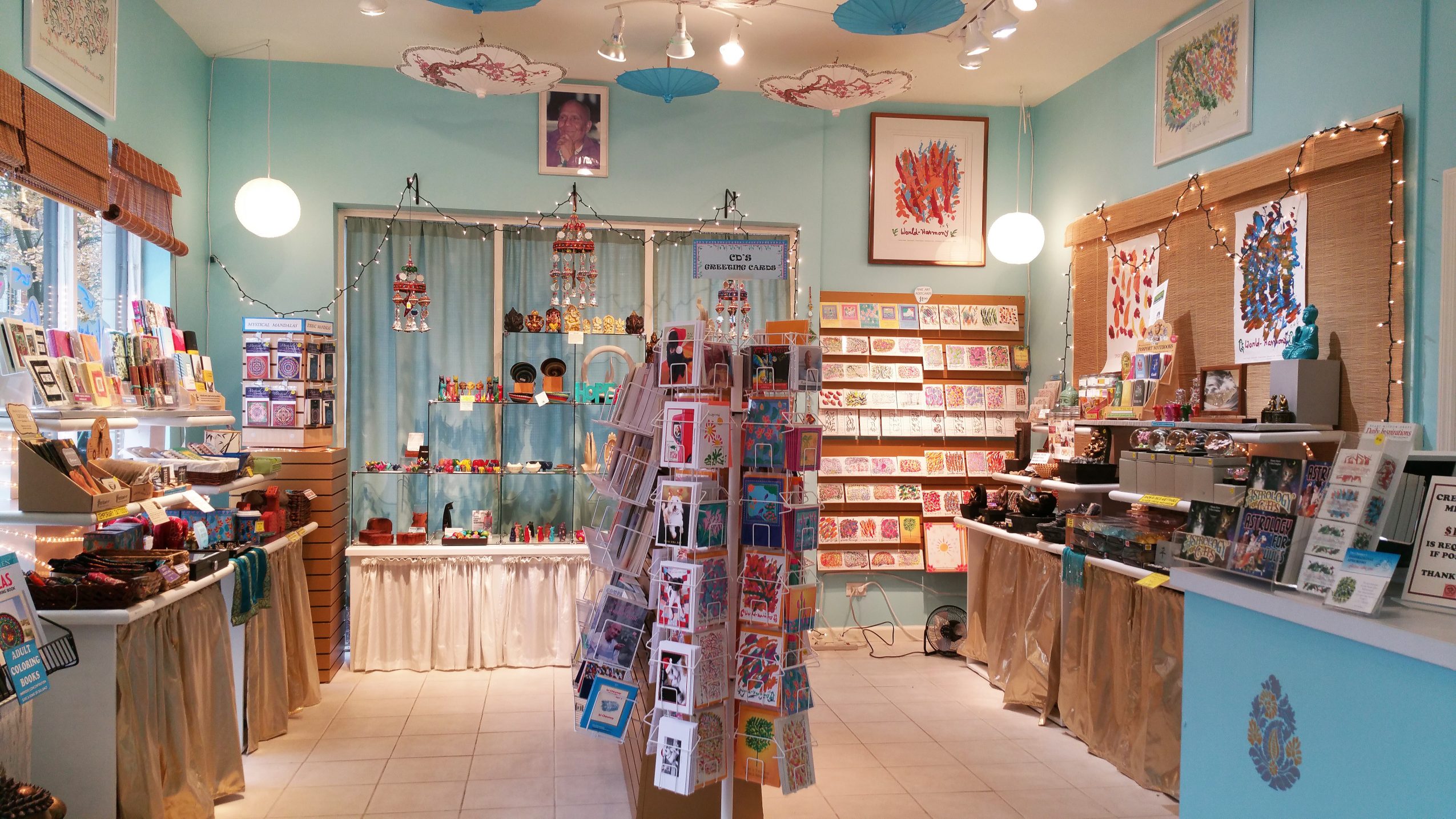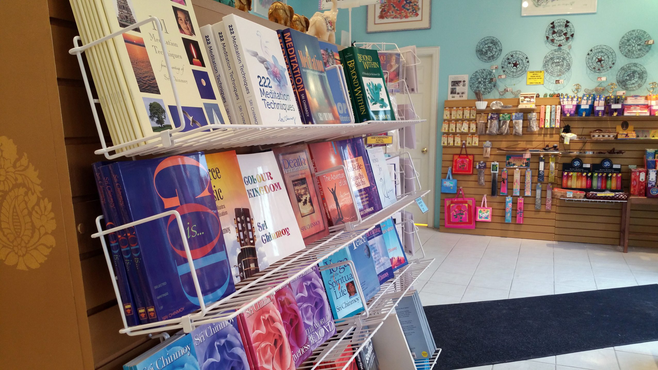 We specialize in unique, handcrafted, and fair trade gifts with a spiritual flavor, and books by spiritual master Sri Chinmoy and his direct disciples. We feel that we’ve created a space with a uniquely peaceful and spiritual atmosphere; we appreciate sharing our store with visitors whether they purchase anything or not. As a form of selfless service, we try to promote spiritual development and meditation as a way of life. We also offer free public meditation classes.