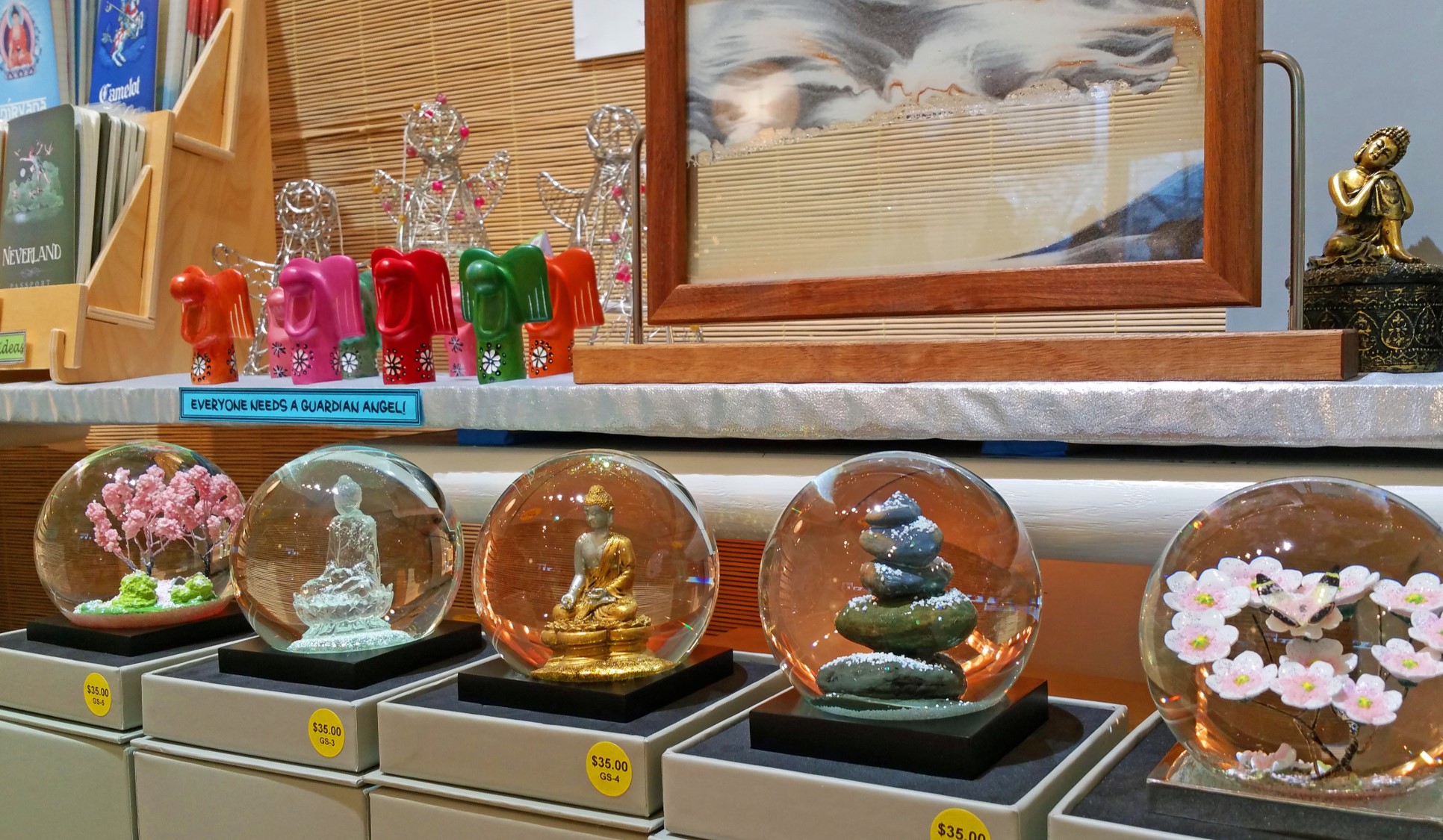 The entrance to the centre consisted of a large unused room which had long been intended to be a bookstore and we decided to make that happen. Since space was owned by our meditation group, we didn’t have to pay rent or utilities and, luckily, it was located in a commercial building. We scraped up money from the meditation group members and fixed the place up. In 2009 we opened Victory’s Banner Books & Gifts. Gradually our operation has evolved into primarily a gift store with items from around the world, mostly Asia.