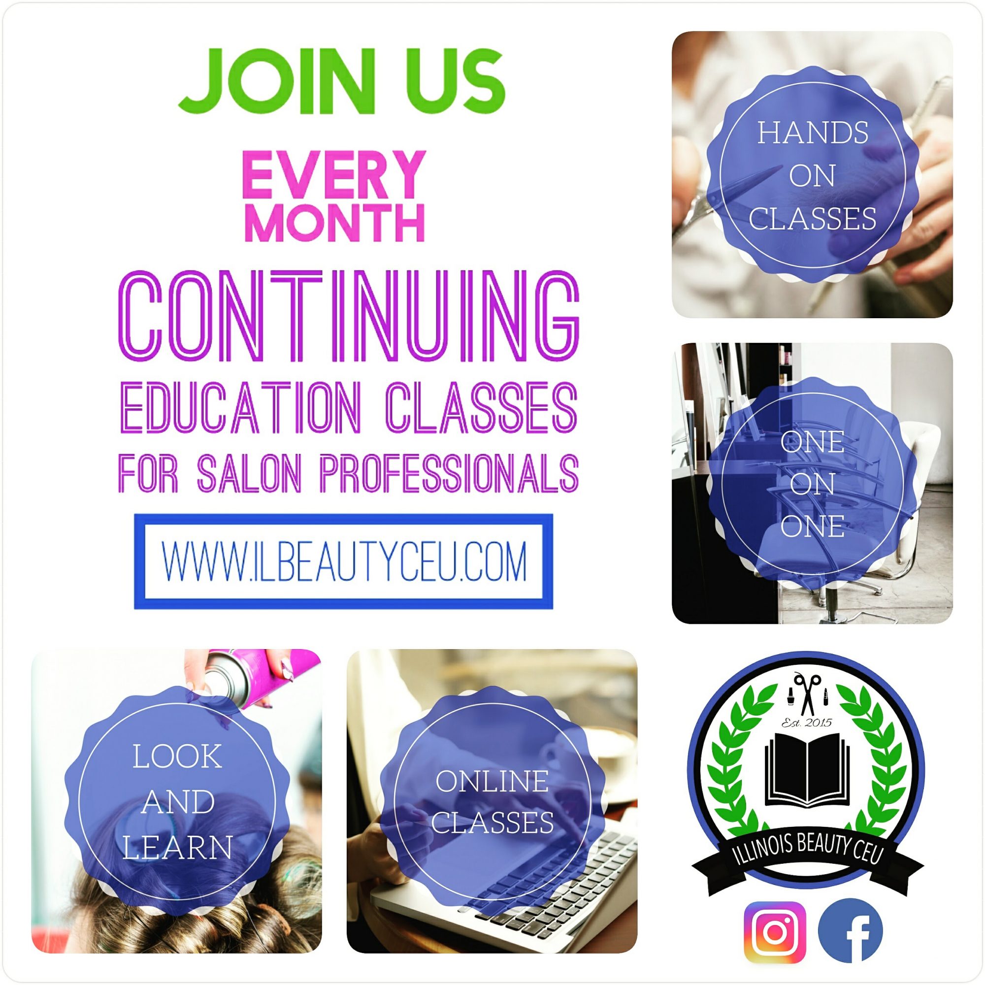 After I graduated beauty school in 2004 I started my career as a stylist in a chain salon building my skills and clientele, then after a few years of raw industry experience I moved on to full service salon where I had a great opportunity to learn from senior stylist. I loved it… from there I got married had children and my husband actually suggested since I love taking education classes and hated working weekends and nights away from my family to go back to school to become an educator.. Get a (9-5 Mon-Fri) teaching job…it was perfect…so I did… My first educator position was a part time lead educator at REGENCY beauty school which later lead to full time lead educator. Sadly when they abruptly closed their doors with no notice to students or staff a few years later, I knew in my heart I wouldn’t find another campus and fellow staff members like I had again So instead of starting over at another school, I made a decision to concentrate on my continuing education business full time. ILLINOIS BEAUTY CEU is a continuing education company for salon professionals. IBC was born Oct 2015 and has grown so much the past few years as we continue to build a team of talented professionals with passion to share their skills and knowledge of the industry. Let me back up a bit… I choose to build this company because I am an educator and I love education but as a full time stylist as well behind the chair I wasn’t a huge fan of education with a selling concept I wanted to offer something DIFFERENT & NEW strictly education. No selling. That way any Stylist from any background has an opportunity to explore new skills from all types of salon Pros without feeling intimated by a sales pitch. As of today IBC has 6 independent educators and currently scheduling interviews to add to the team. IBC has given Talented Artists in IL the platform to share their talents as well as offer the state required hours to be given for the class for all attendees.