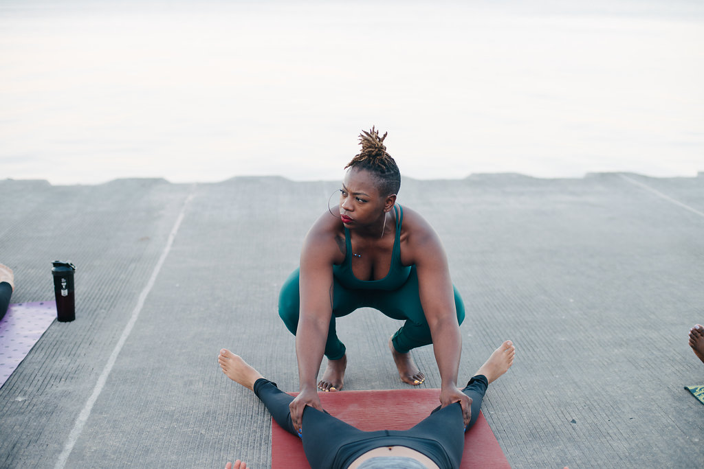 Hot Mess Yoga is about teaching people yoga in relatable ways. The first excuse people make when you invite them to class is “but I’m not flexible,” or “I can’t afford it” and I want people to shy away from these beliefs about what yoga is. You never hear people say “but I don’t want to laugh,” so I’ve found a way to lure people with laughs and get them on their mats. So my job is to encourage people to “sing to songs, leave super sweaty, and don’t you dare shave your armpits to come work out” because this is a safe space. This space is for couch potatoes, Instagram models and everyone in between. In class, I’m cussing, wiping my sweat mustache, and telling a joke here or there about how I hate my cellulite, and people can relate to that.