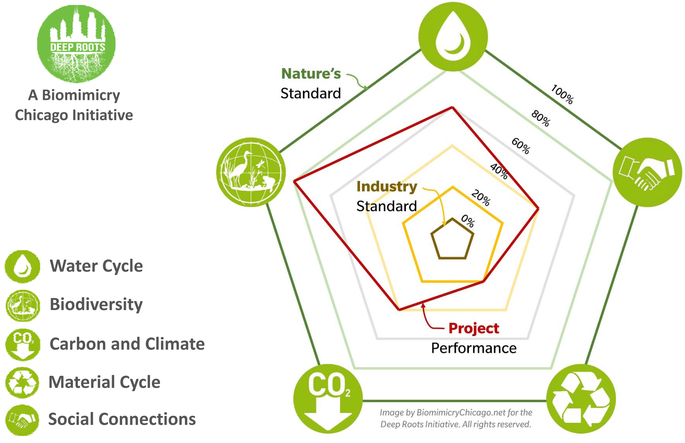 We are currently developing our flagship project, the Deep Roots Initiative, which seeks to catalyze a paradigm shift in the built environment in the Chicago region. Together with a diverse network of stakeholders, we aim to establish a science-based definition of sustainability for our region alongside an interactive tool of place-based nature-inspired solutions to empower the industry to measure impact, allocate resources and innovate to create a truly sustainable and resilient future.