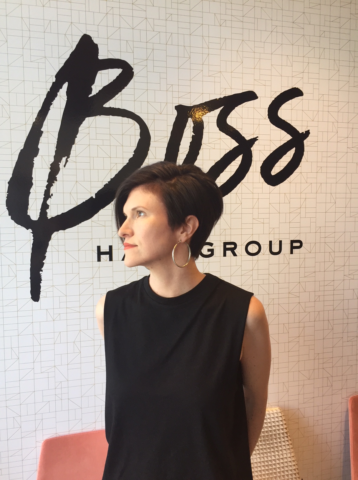 The business I work for is called BOSS HAIR GROUP. I am a hairstylist. I do NOT do hair color. I cut hair, I style hair and I specialize in hair extensions of all kinds. I also dabble in human hair wigs. I am a certified yoga teacher and a certified health coach. I am known for my precision haircuts and my seamless invisible extension work. I’m also known for my friendly demeanor and passion for my craft. I love helping woman (and men) feel great about themselves.
