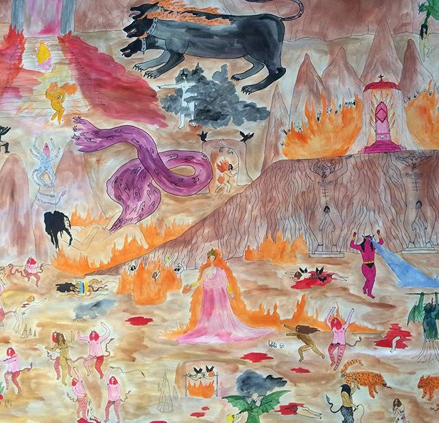 I’m currently working on having my work exist as more than just paintings and drawings by thinking in installation/ceramic work and converting a gallery space into a temple to house my work because I feel when creating such in-depth worlds and narratives it demands to bring it into the physical world to get the full experience. Currently, I’ve been working on commission work, as well as being a part of numerous gallery shows which I’m very thankful to have so soon after graduating!