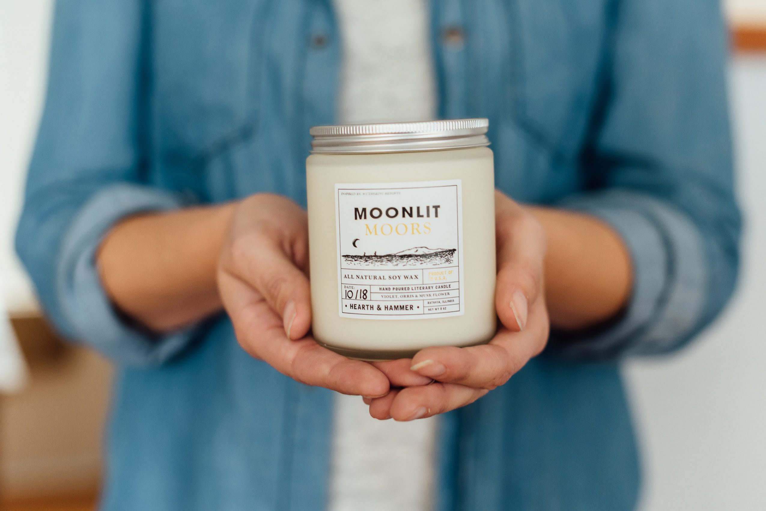 Hearth & Hammer is a literary candle company built on the values of wanting our products to be sourced from the United States and made by hand. We craft our candles from all natural domestically grown soy wax, eco wicks—free from lead, and high-quality essential oil and fragrance blends. It is our goal to limit our waste, our paper labels are printed on recycled vellum, our amber tumblers are made from recycled glass and we support companies that use carbon neutral shipping. We specialize in crafting literary candles meant to bring your favorite novel to life. Whether it’s Thoreau’s deep woods or Bronte’s moors, we are dedicated to illuminating literature through aromatic storytelling. It is one of our greatest joys to read a novel and then spend hours testing and formulating new scents to bring the main motif of the novel to life. We are most proud of our ability to give back. Before I started Hearth & Hammer, I was a teacher and so it was really important to me to give back in some way. We donate $1 from every Noble Collection candle to a children’s literacy project on DONORSCHOOSE.org. It’s such a great platform because we are able to see exactly where our money goes and show that to our customers and retailers who help make these donations possible. It’s important to us to support low-income, underserved schools as we know many teachers are paying for their classroom libraries out of their own pockets.