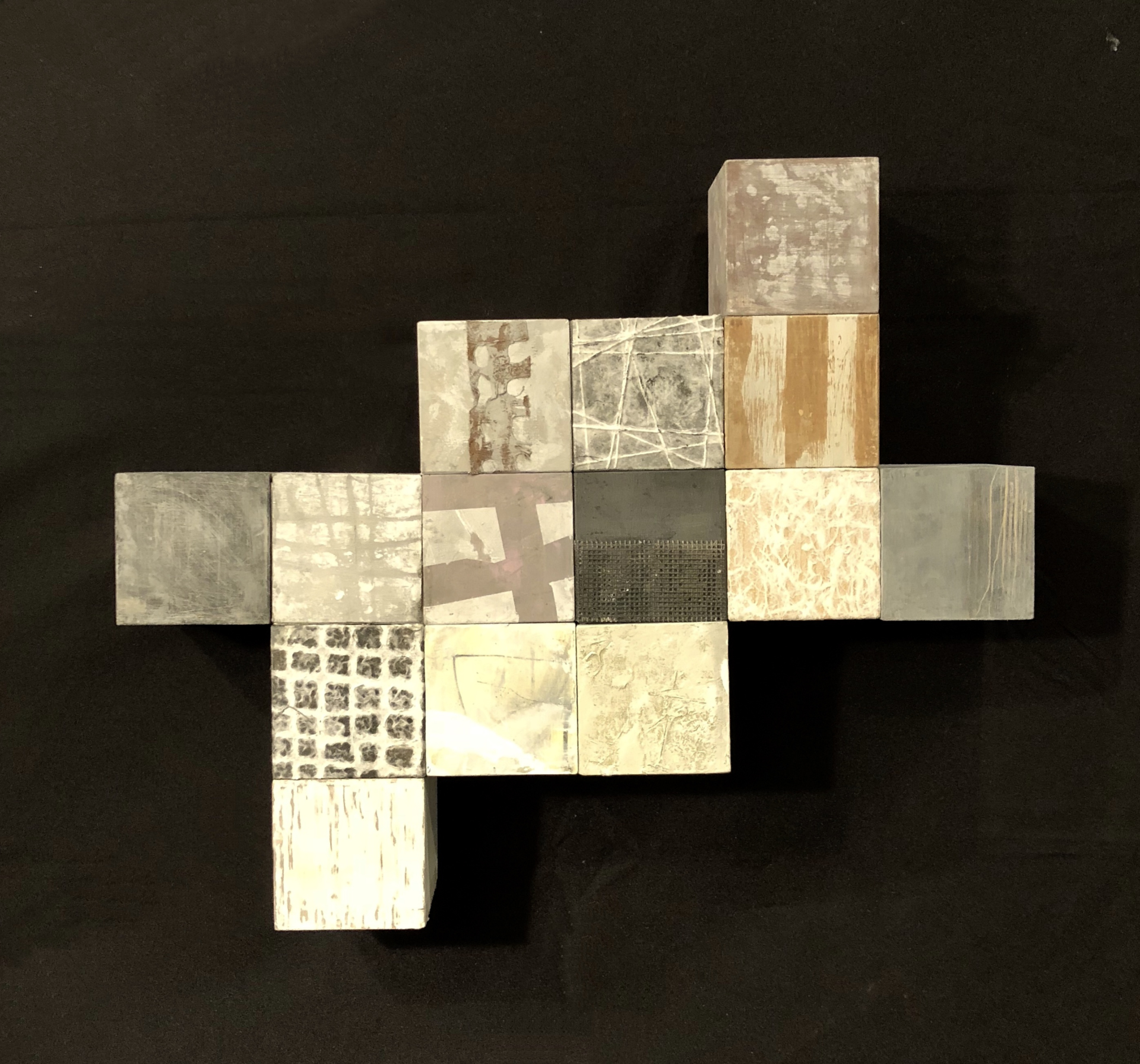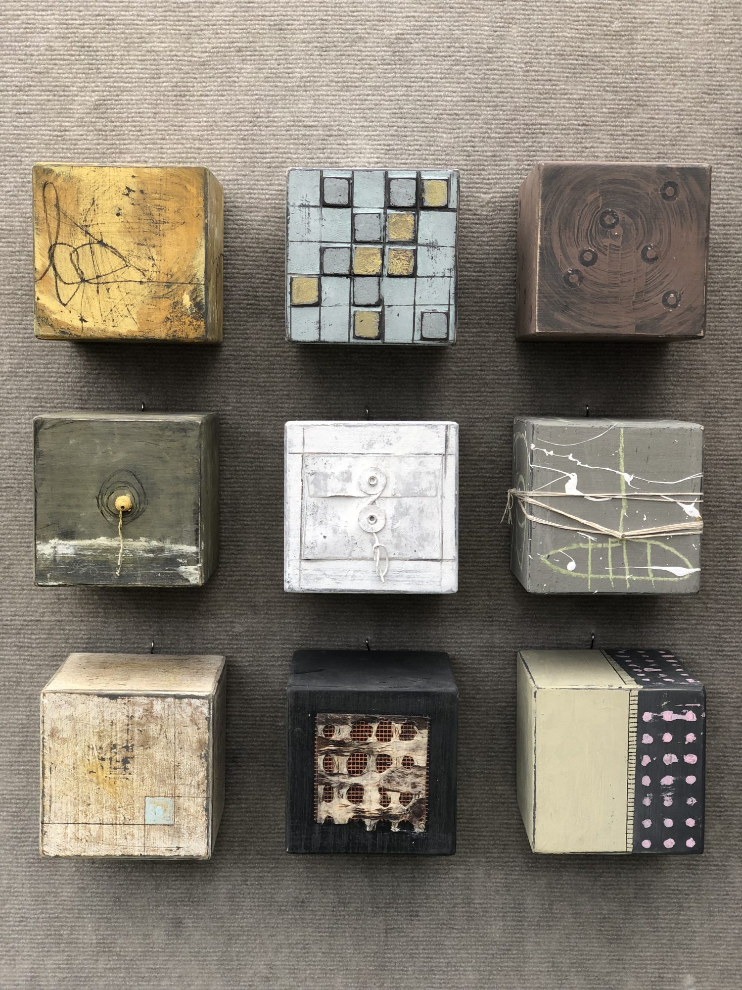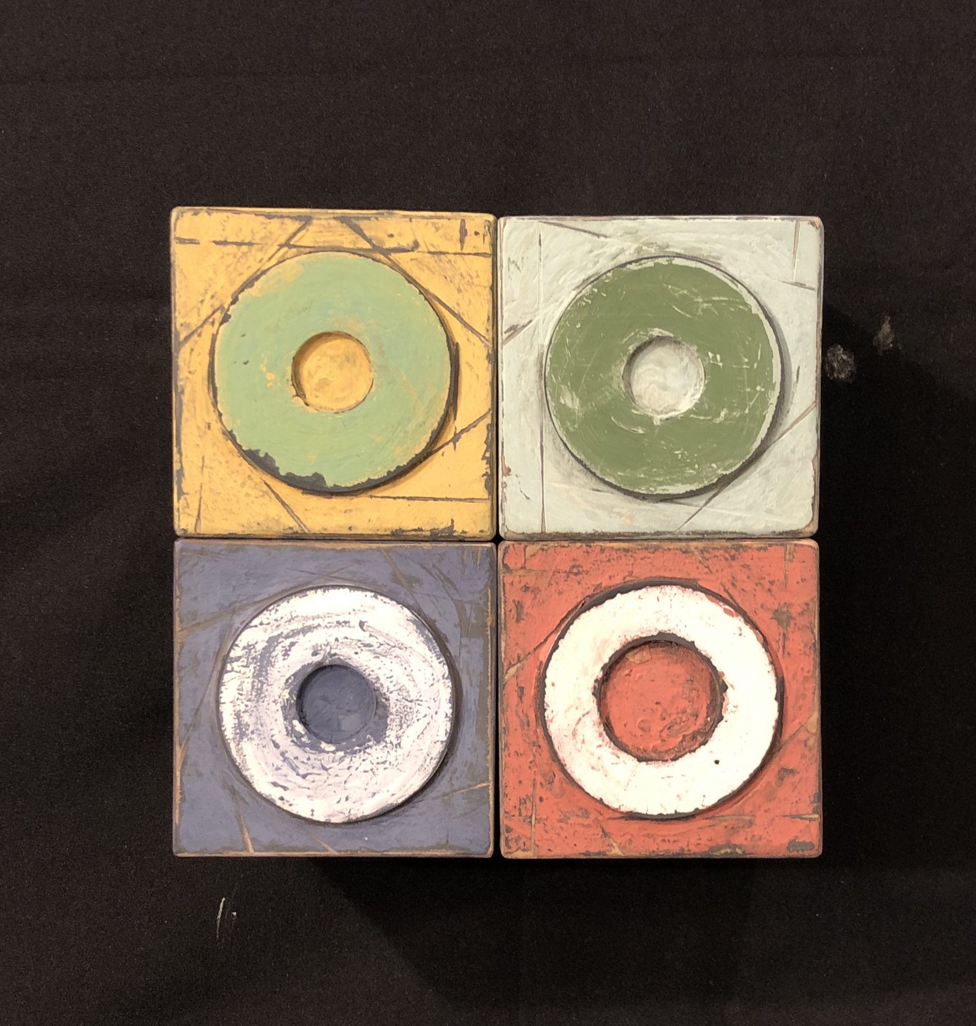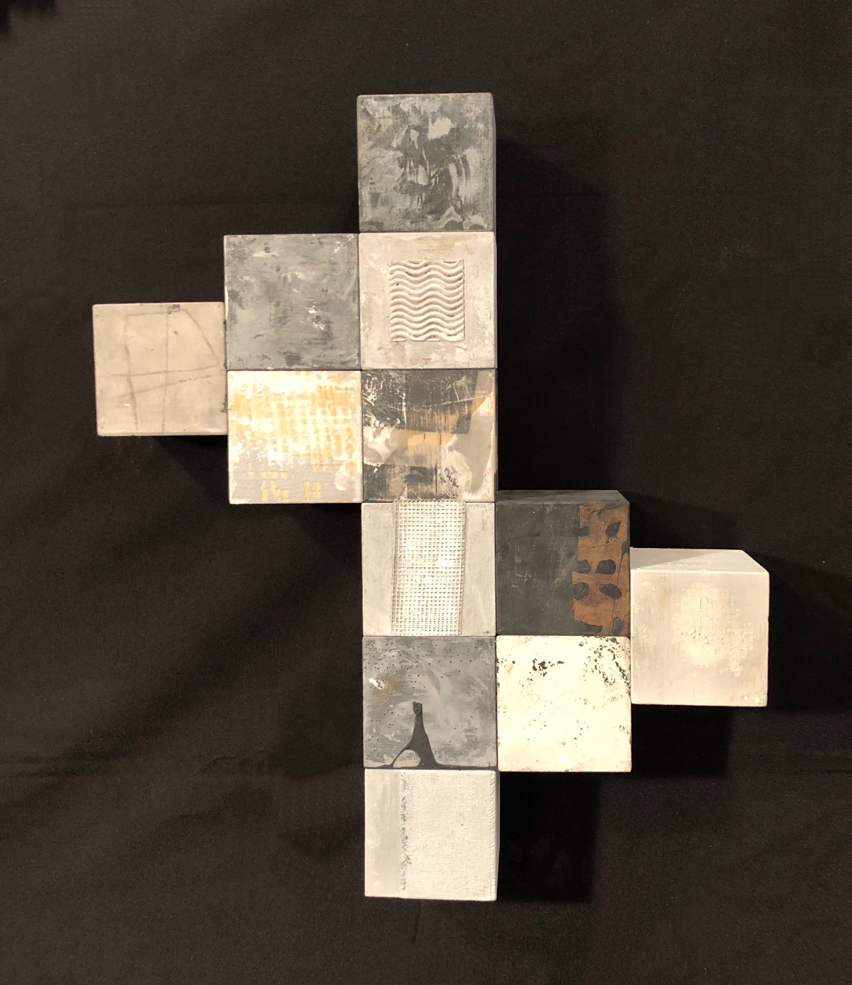 I deconstruct and reconstructs layers of roofing tar, plaster, found & interesting things, metals, symbol’s, rich acrylic colors to create inspirational and emotionally driven paintings and sculptures.