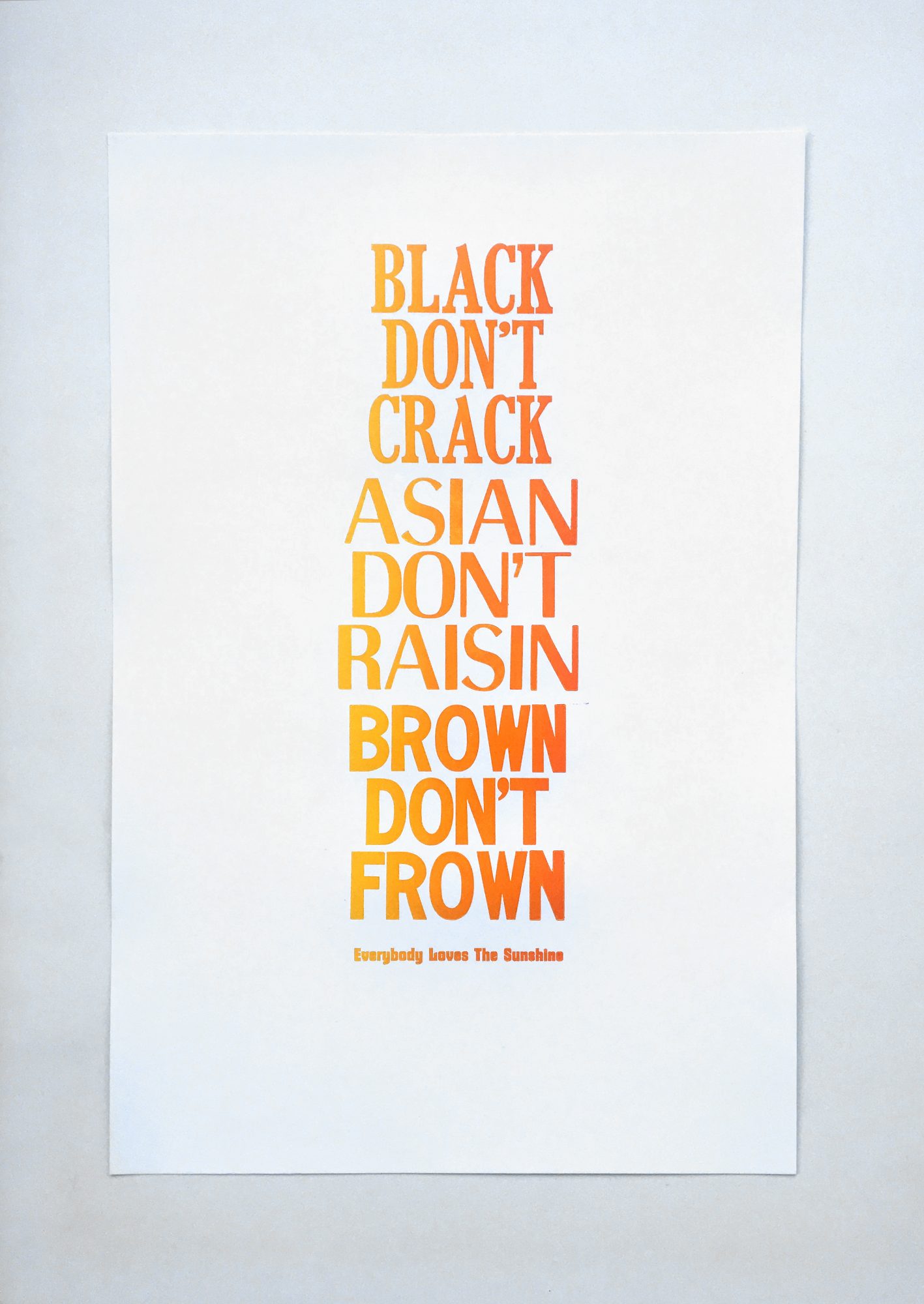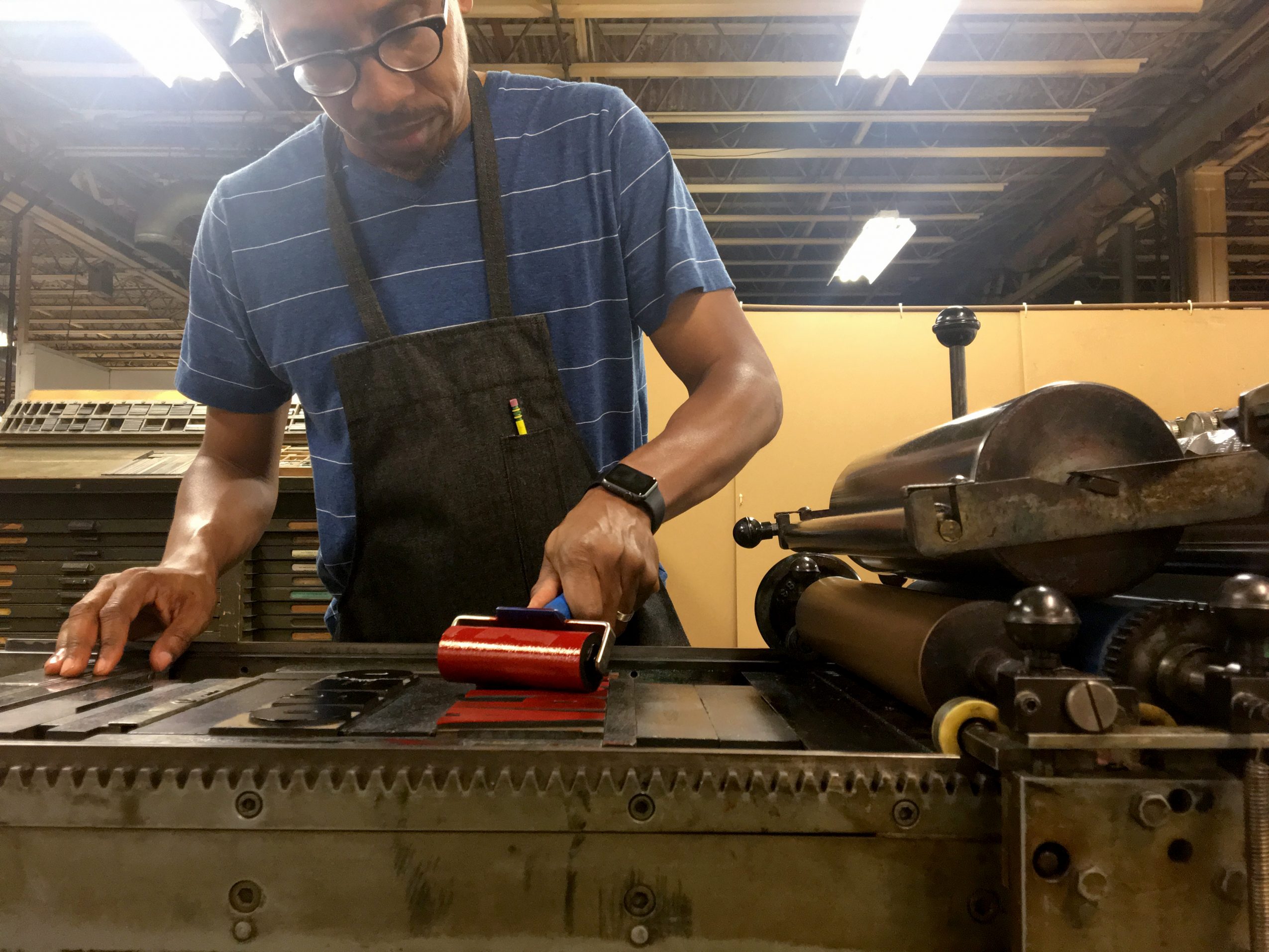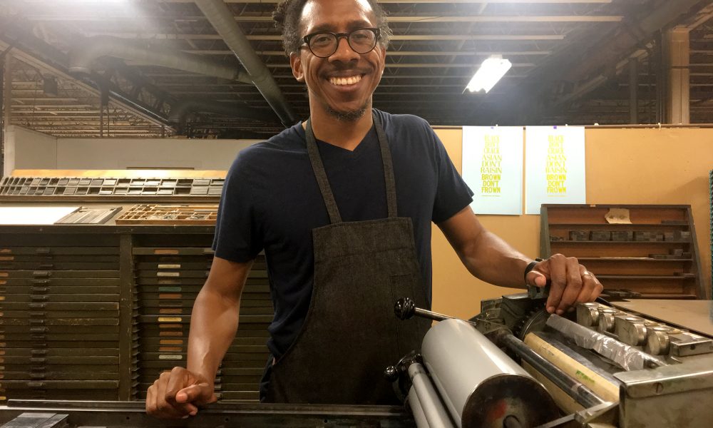 I’m a designer and letterpress printer. And I typically make posters and books. I deal a lot with race, identity, and culture in my work. I use a common cultural language of stories, myth, stereotypes, and slang to re-contextualize implicit and explicit ideas about race — hopefully, in a way that invites conversation. I’m most proud of or happy about the conversations I’ve had with people about my work. I’ve gotten to hear firsthand the impact the work has had and seem some really interesting and sometimes difficult conversations evolve. Also, I feel a part of a larger artistic community of printers and makers that’s really been exciting. I’m learning more how to best approach the work and how to get it out in the world.