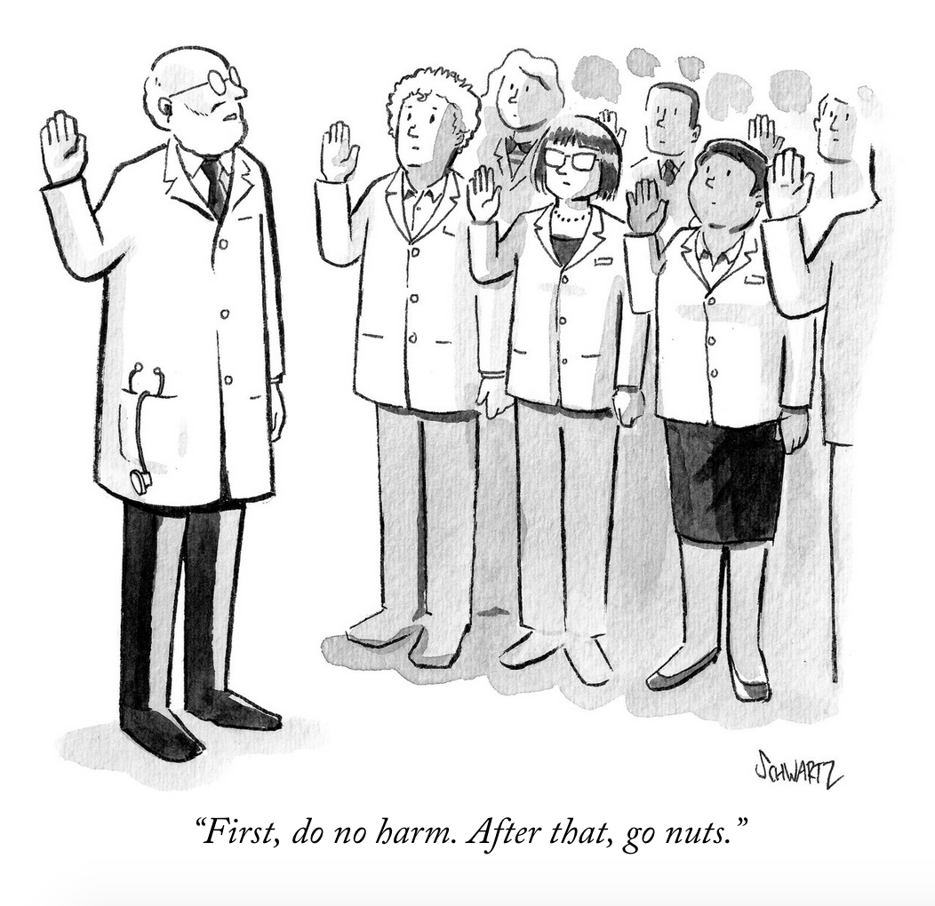 I had two dreams growing up: I wanted to be a cartoonist, and I wanted to be a doctor. As I got older, I realized my passion for cartooning was stronger than my interest in healthcare, but I continued down the doctor path all the way through med school and beyond because it seemed like the safer move. Eventually I gathered up the courage/stupidity to leave medicine and try my hand at comics and cartoons, and before long–and with a lot of luck! –I was a regularly contributing cartoonist for the New Yorker.